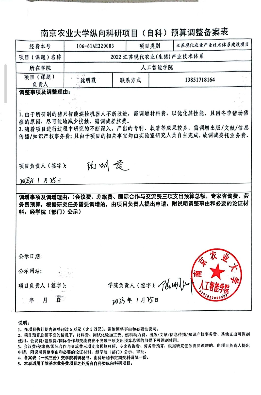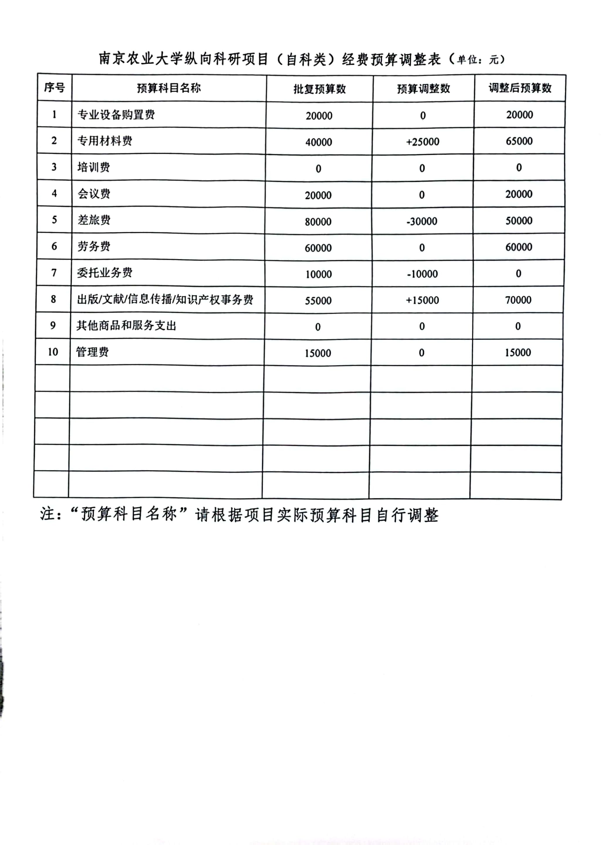 南京农业大学纵向科研项目(自科)预算调整(学院)公示