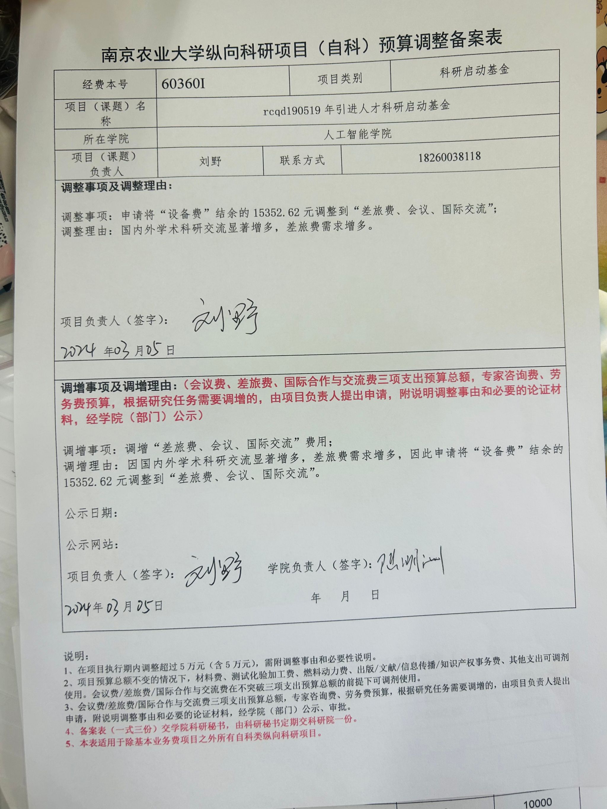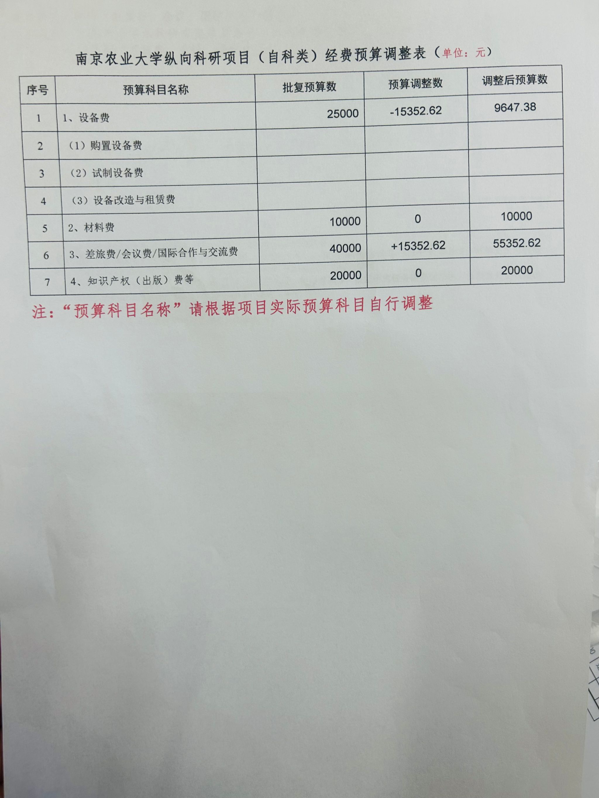 南京农业大学纵向科研项目(自科)预算调整(学院)公示