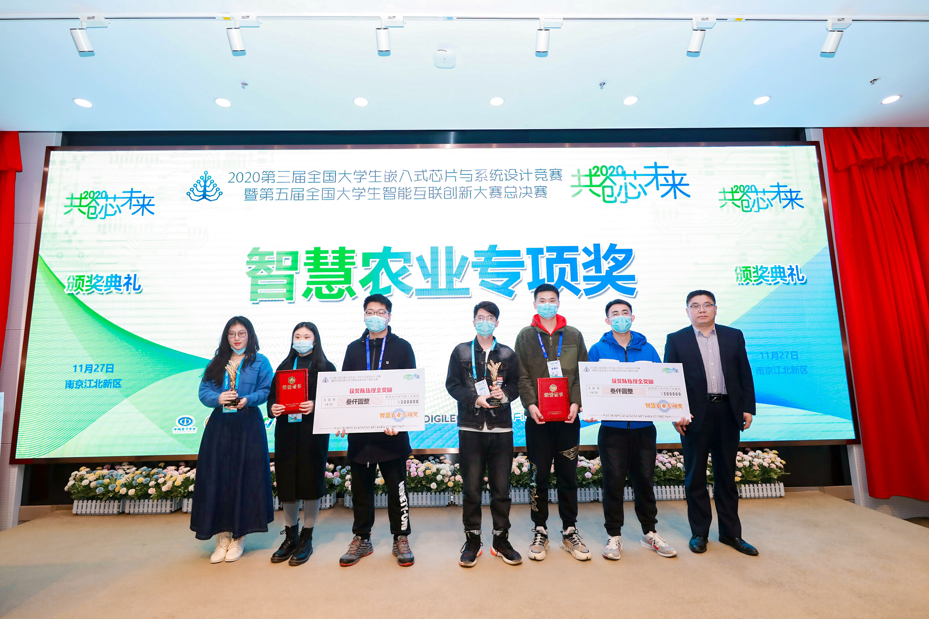 郭宋、仝曦熳、张妮组项目“基于机器视觉的稻麦播种漏播检测及智能补种装置”荣获一等奖和智慧农业专项奖,并获奖金6千元;陈涛、袁朴冰、陈悦洁组项目“基于FPGA和暗通道先验算法的便携式雾透仪”荣获三等奖,并获得奖金1千元。同时,av影片