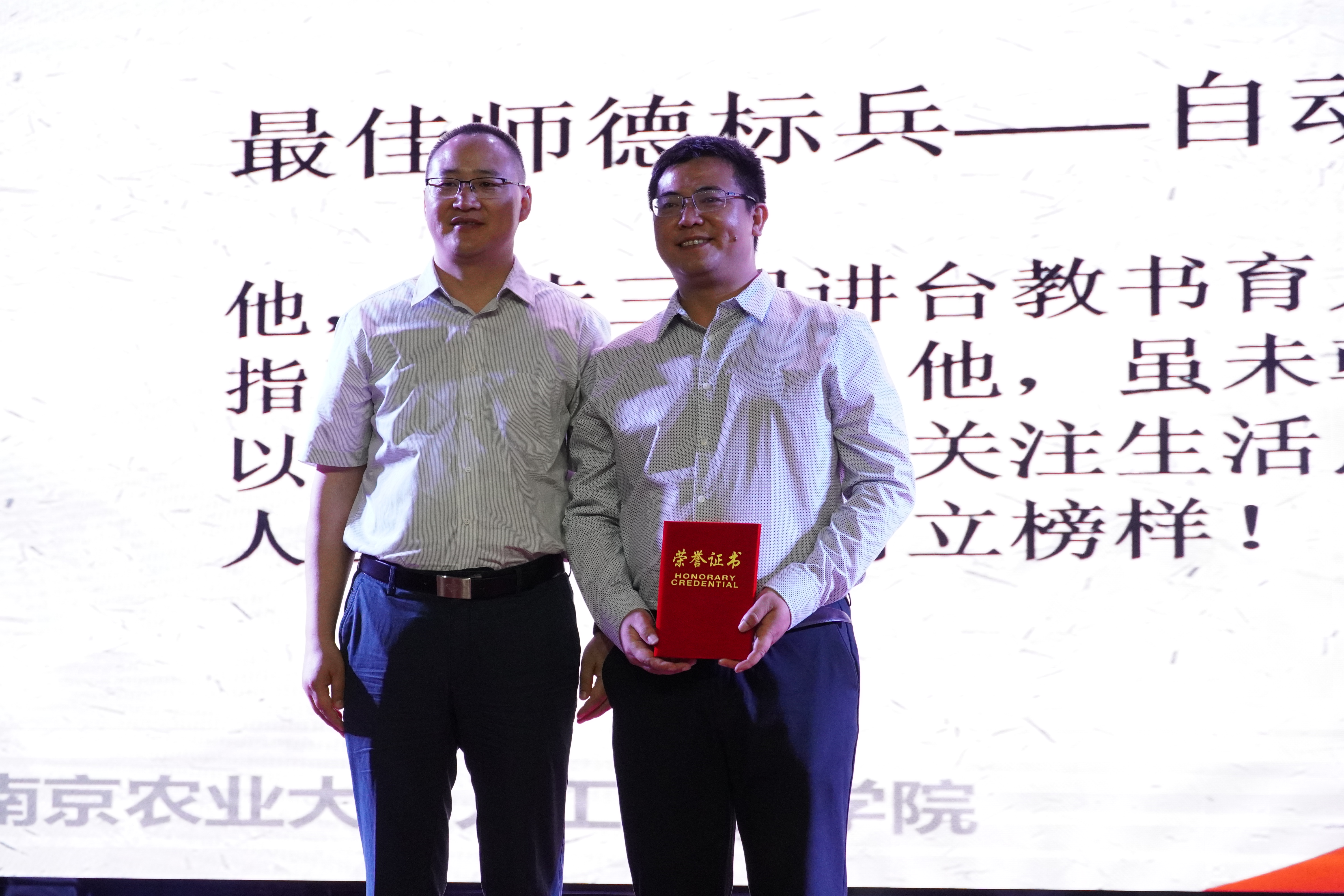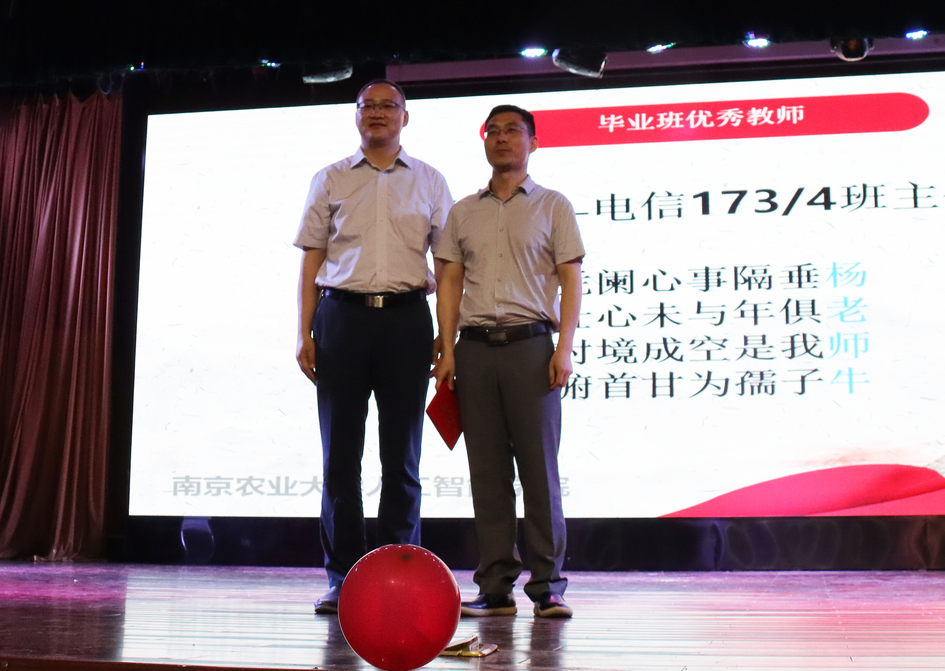 成长的道路上少不了老师们的谆谆教诲,为感恩每一位班主任的辛勤付出,毕业生班级自发组织,为班主任撰写颁奖词,表达对班主任四年陪伴与教育的感谢。四位班主任分别获得了“最佳良师益友”、“最佳师德标兵”、“最可爱班主任”及“最牛教师”的称号。并由卢伟为毕业生班主任进行了颁奖。
