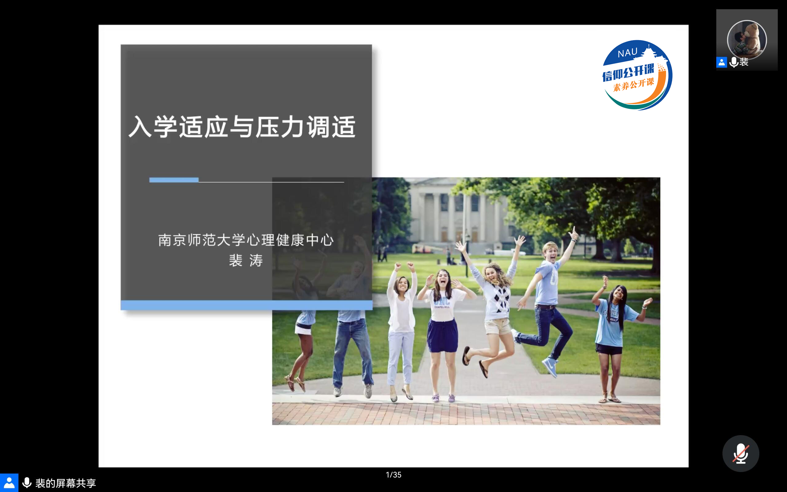 面向2021级新生举办了新生入学教育第一讲——心理健康专题线上讲座。本次讲座的主讲人是南京师范大学心理健康教育咨询中心专职咨询师裴涛副教授,裴教授是临床心理学硕士,中国心理学注册心理师。参与讲座的有av影片
