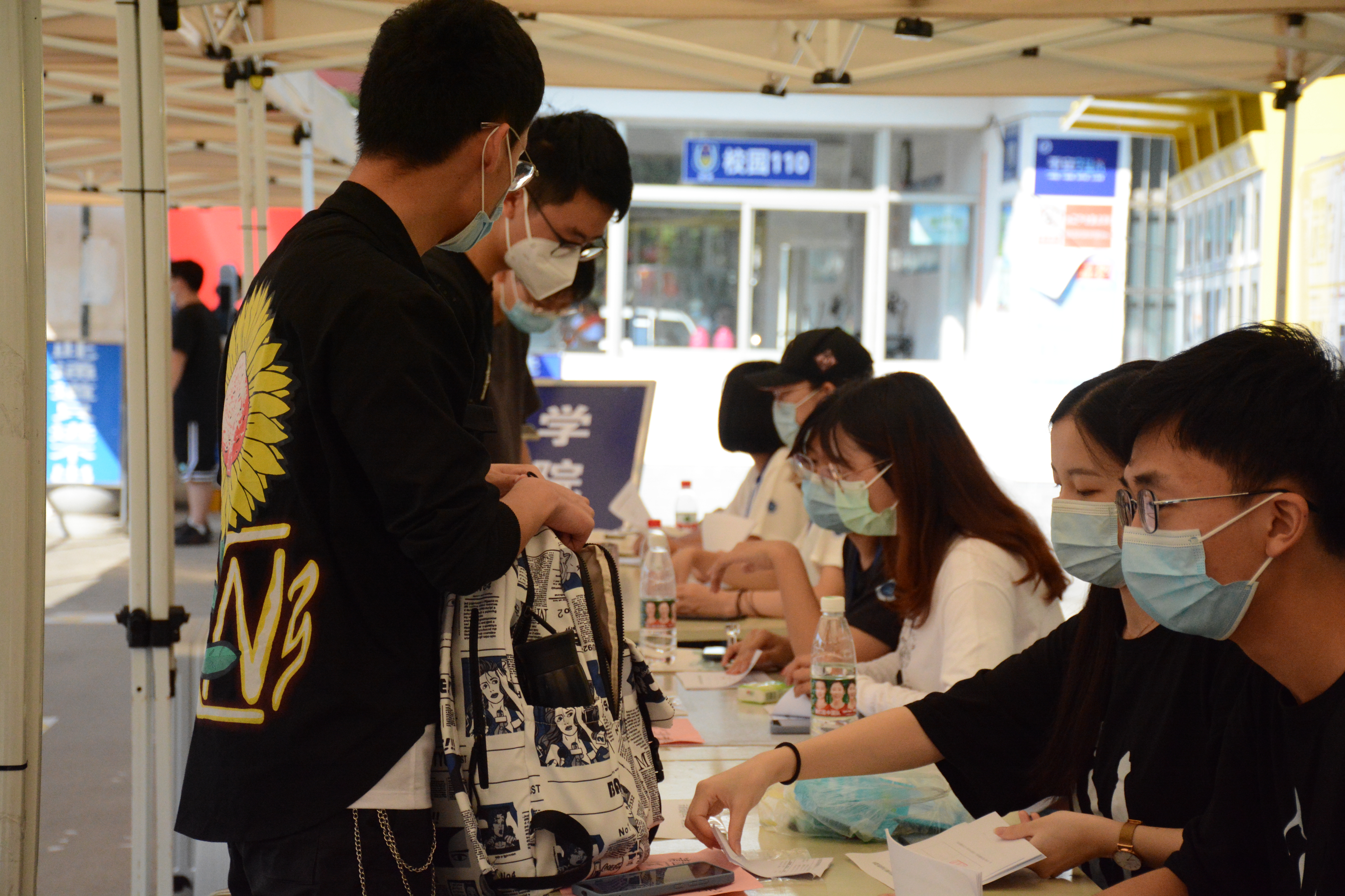 学院党委副书记(主持工作)沈明霞、党委副书记卢伟、副院长刘杨,以及相关部门负责同志来到新生报到现场慰问工作人员、指导迎新工作。在每个迎新点详细了解迎新工作流程和进展,亲切慰问各学院迎新接待工作人员和志愿者,对他们的辛勤付出给予了充分肯定,并叮嘱要做好自身防护,强调要在做好疫情防控的前提下,尽心尽力做好服务工作,确保每一位新生都能及时、顺利报到。沈明霞等人还来到学生宿舍与新生亲切交谈,介绍学校相关情况,了解新生实际需求,为广大新生开启崭新的大学生活送上美好祝愿。