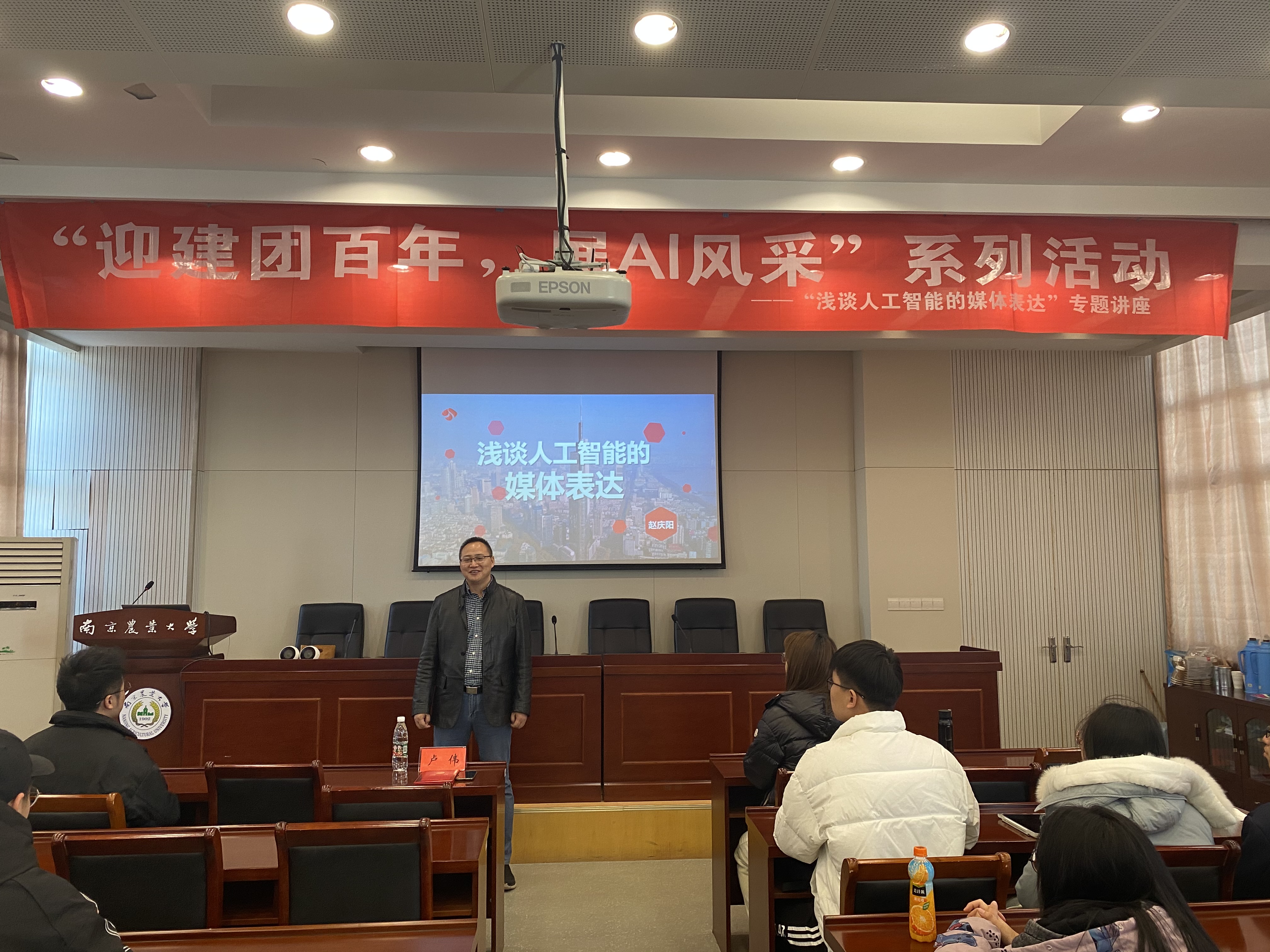于育贤楼C502成功举办“迎建团百年,展AI风采”系列活动——浅谈人工智能的媒体表达专题讲座,讲座特邀江苏卫视节目中心二部主任赵庆阳担任主讲人,av影片