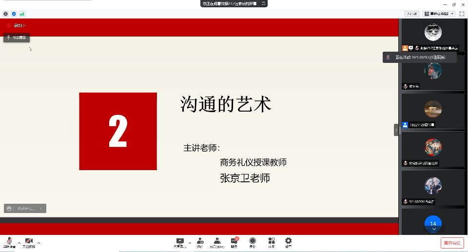 线上开展了高级团校培训开班仪式暨“协商共勉,沟通共进”讲座,院团委邀请了商务礼仪授课教师张京卫、av影片