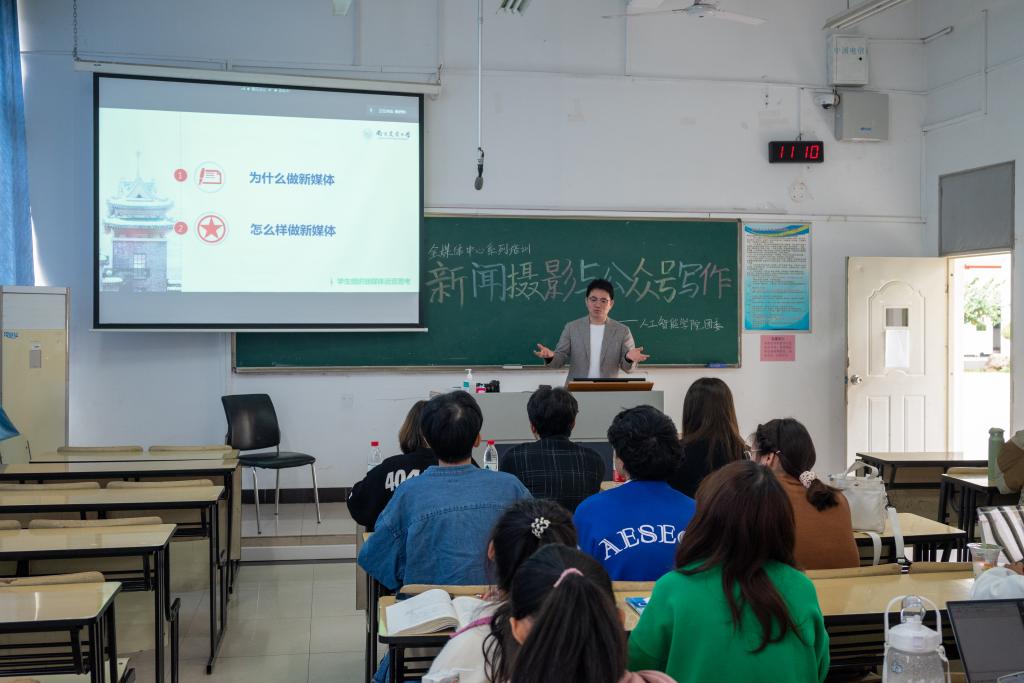 举办全媒体中心系列培训——新闻摄影与公众号写作讲座。本次讲座线上线下同时进行,学院全媒体中心全体成员在线下参与培训,其他同学在线上参与。“小钦心”工作室李长钦老师主讲,研究生辅导员吉良予出席讲座,黄逸宸主持。