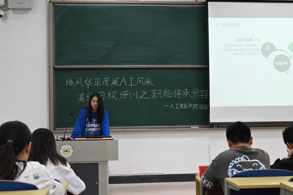 培训开始,主讲人王宏燊首先分享部门工作交流经验,他表示,通过干部与干事的经验交流,能够更好地提升工作能力、了解自身职责所在,以便未来干事能顺利地完成各部门的任务。紧接着,主讲人刘雅彬从自己留任部门的相关经历出发,针对干事和部长的生活学习方面给出了一些建议,并对同学们的提问给予详细的解答。为了让同学们对职能传承有更深入的了解,刘雅彬向同学们介绍学生组织职能变化和学生工作的意义。最后,主持人对本次交流会进行了简要地总结,并宣布培训结束。
