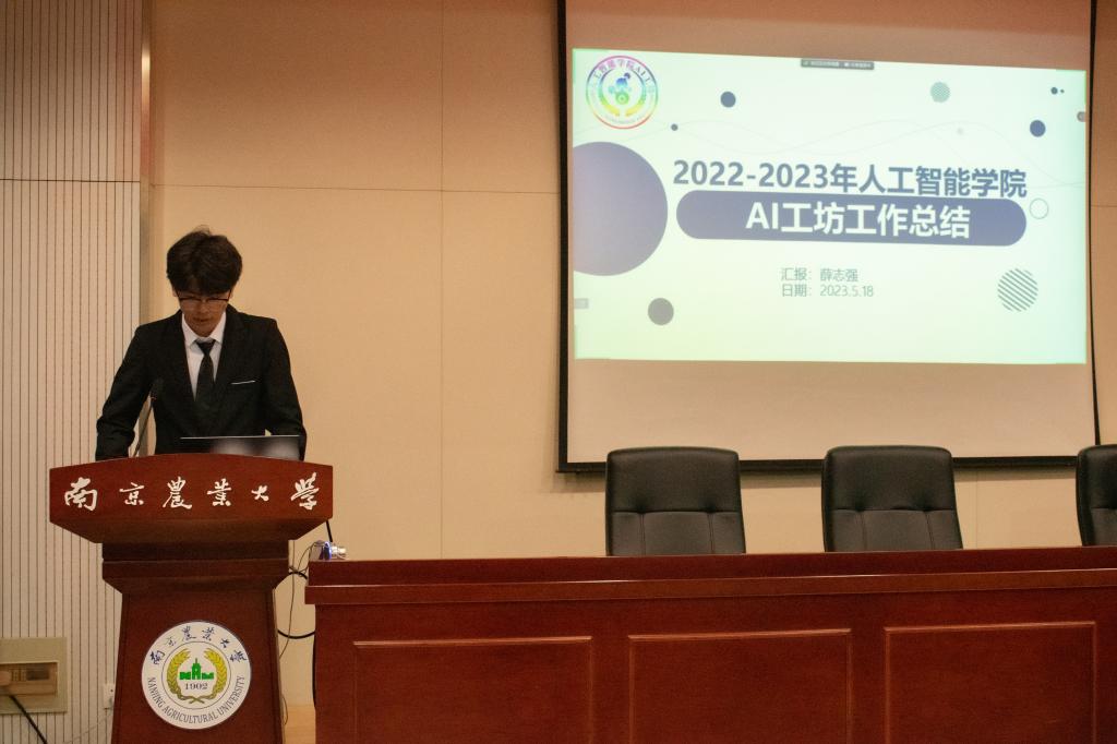 分党校秘书长南靖妍、团委副书记刘雅彬、全媒体中心责任编辑简汇佳、AI工坊主席薛志强做本学年工作总结汇报,同学们认真听取、审议上一届学生组织工作报告。