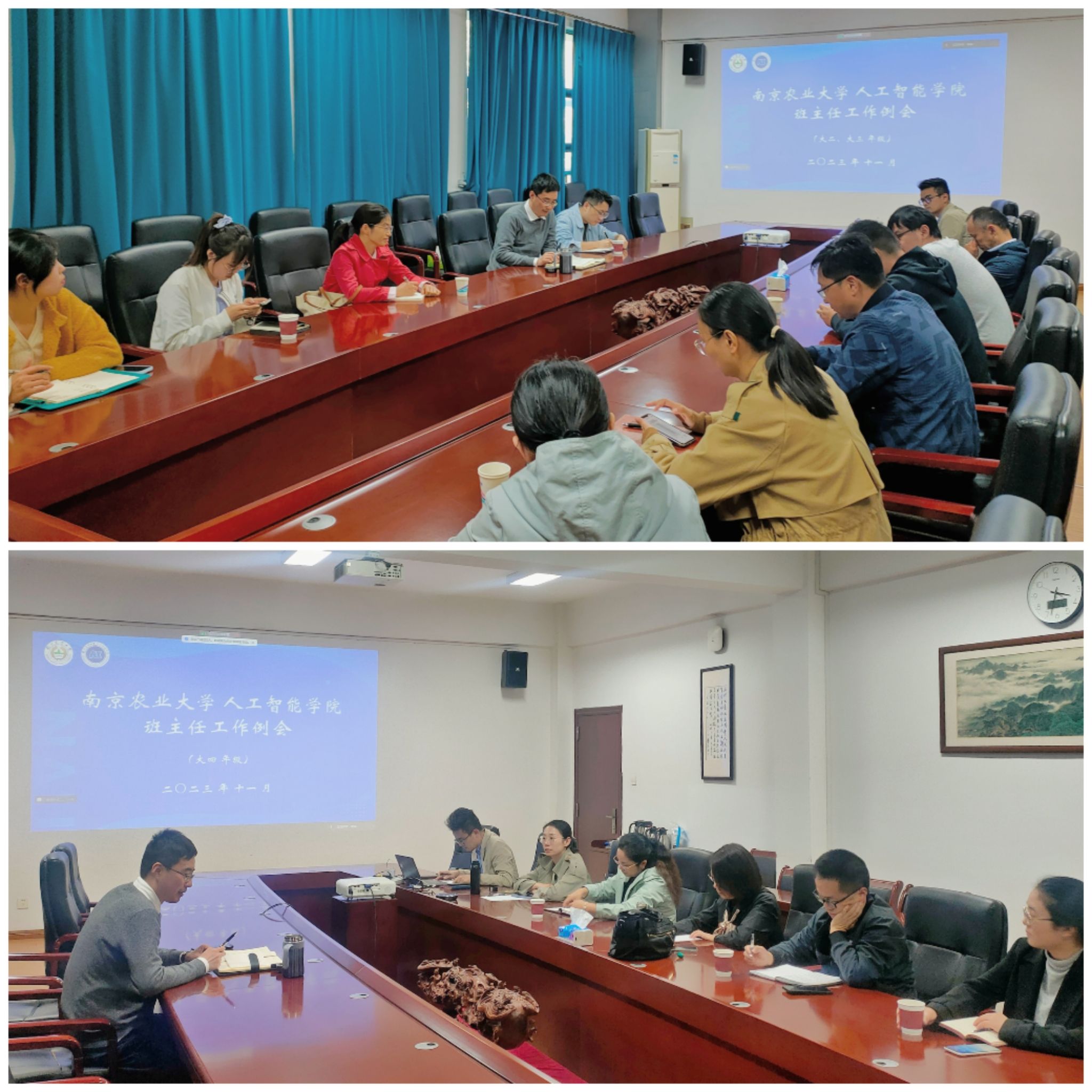 在浦口校区育贤楼C302分两场次召开中年级、高年级班主任工作例会,腾讯会议线上同步进行。学院2020级、2021级、2022级班主任,学生工作办公室全体辅导员参加会议。会议由学院党委副书记;吕一雷主持。