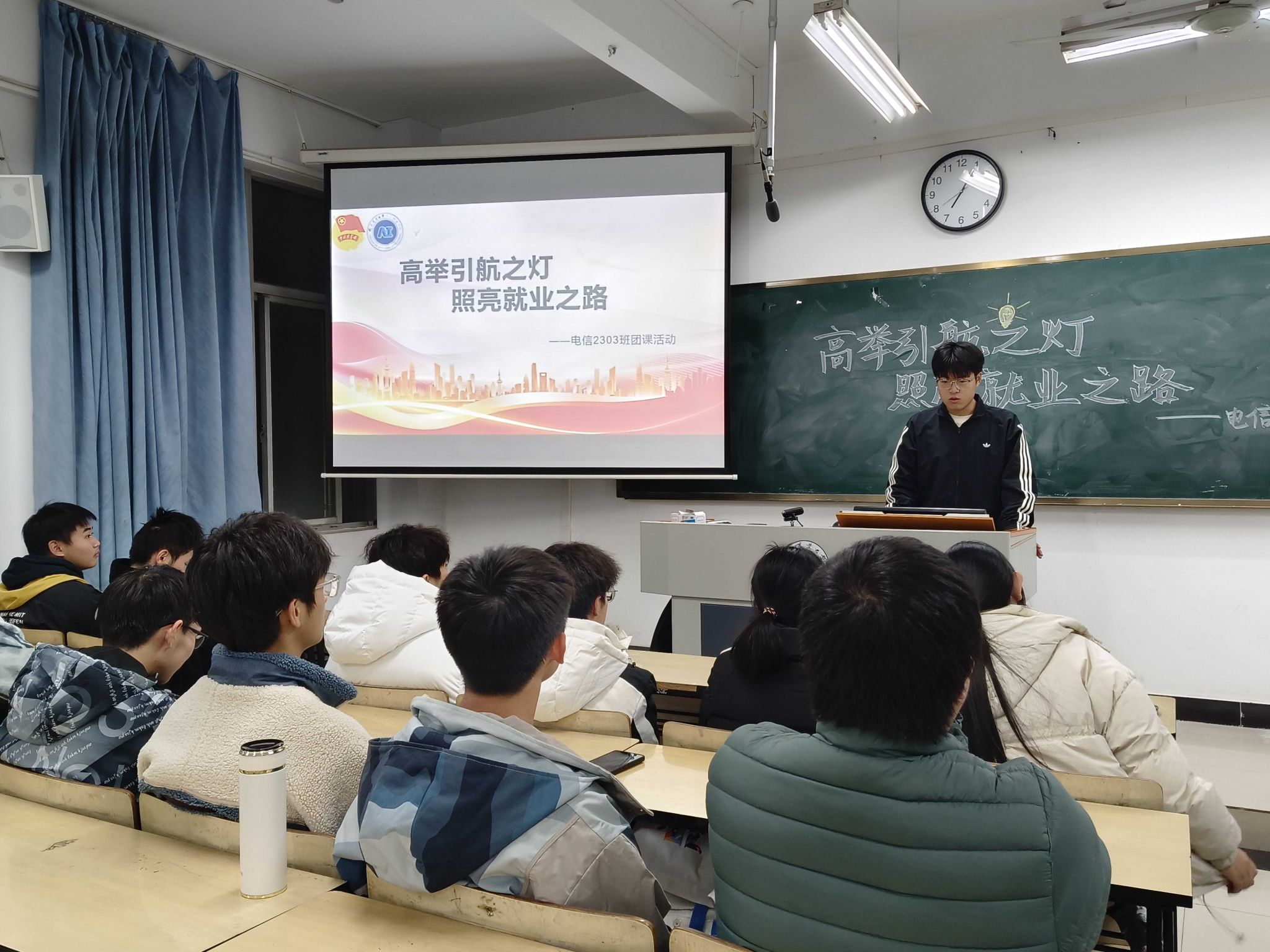 同时,动员大二、大三各团支部围绕“实现个人价值,规划职业发展”开展相关团日活动,通过组织分享会,互相交流职业观念并做出简单的职业规划,帮助同学们更好地确立自己未来发展的方向,更好地建立积极的心态,也能从别人的想法中获得启示,并找到适合自己的路。