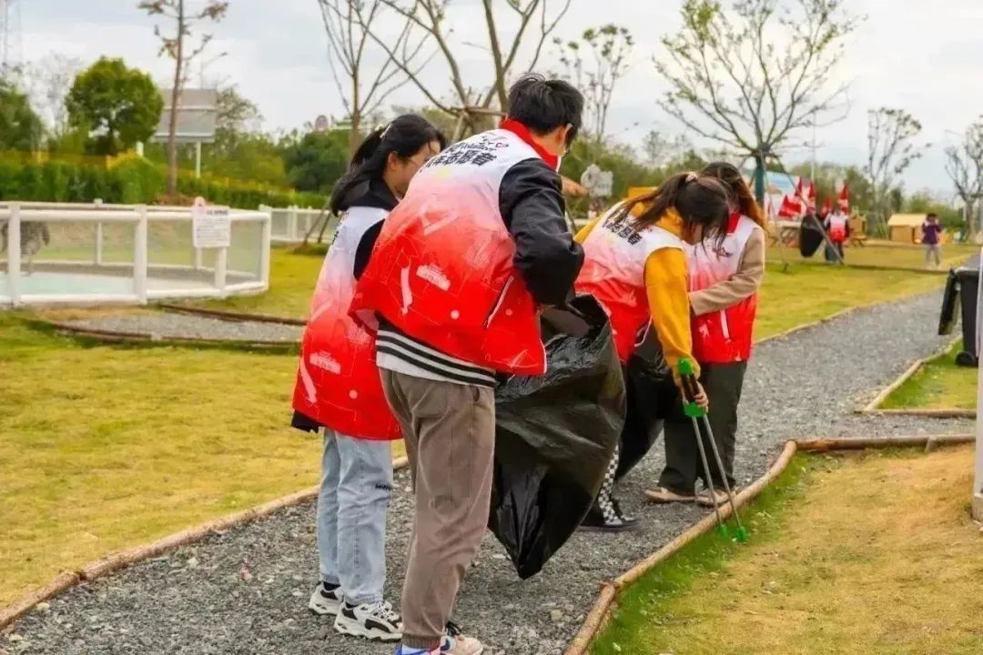 在多乐拾趣花田里,同学们化身勤劳的“卫生员”,帮助保持景区内的卫生清洁,为小动物们营造舒适干净的生长环境。