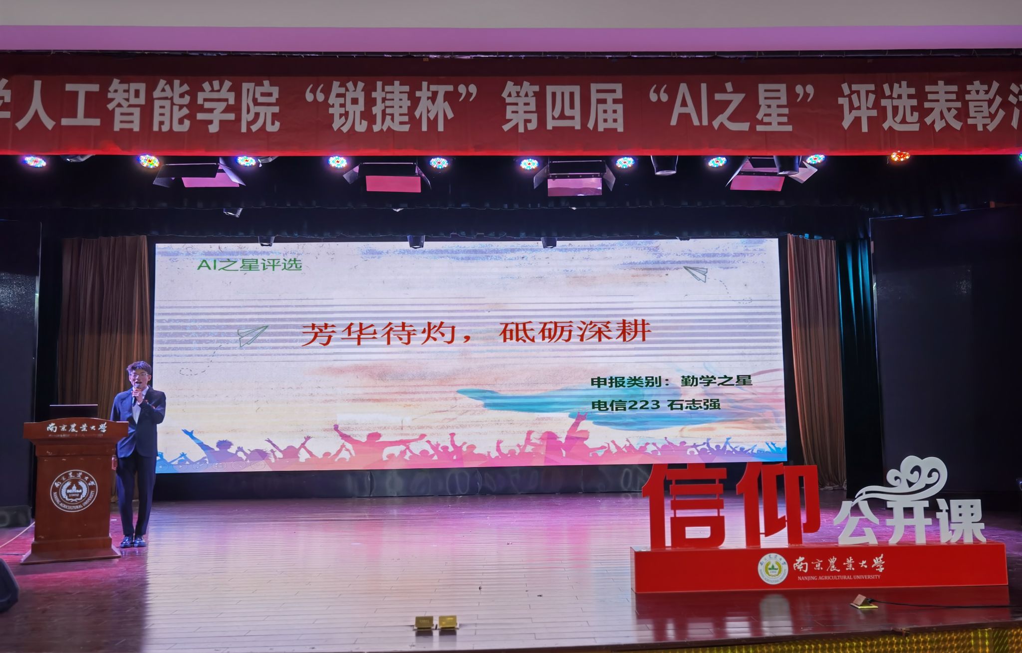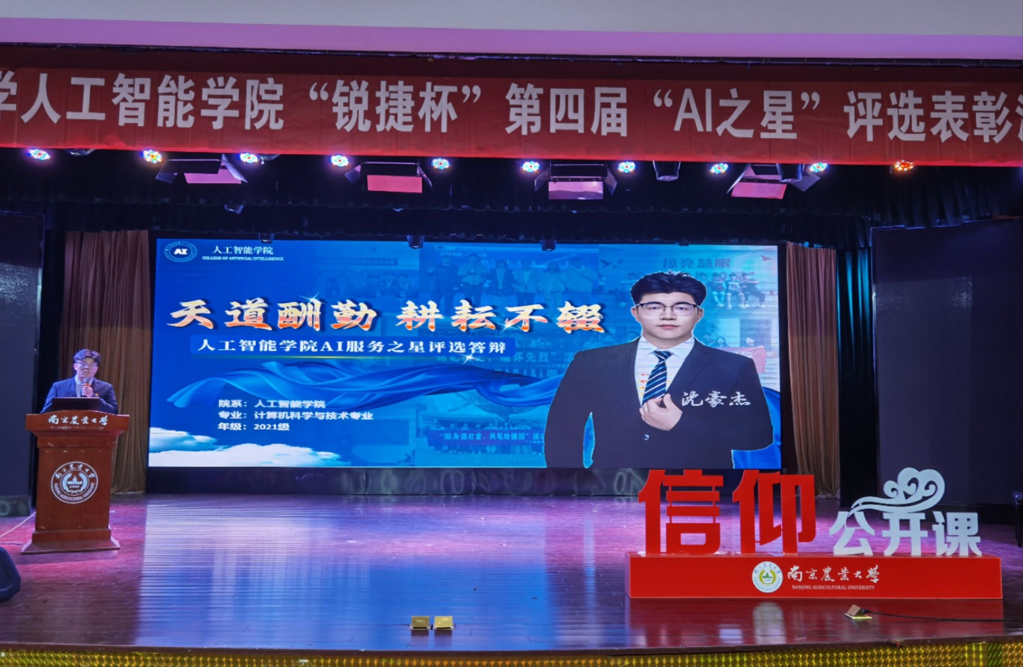 本次“AI之星”评选活动分为道德之星、自强之星、勤学之星、科研之星、服务之星、志愿之星、创业之星、文体之星八个类别,学生可根据自身优势自主选择赛道申报。5月8日截止提交后,学院团委根据递交材料评审出16名候选人进入最终的答辩环节。答辩展示现场,参评候选人需根据自身特色进行个人展示并回答评委提问。