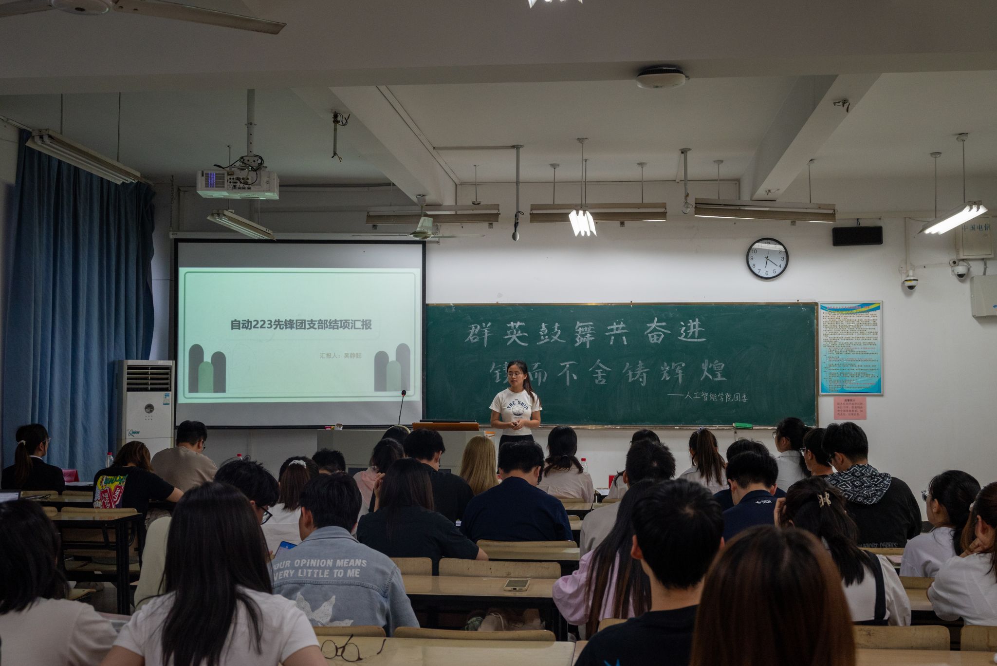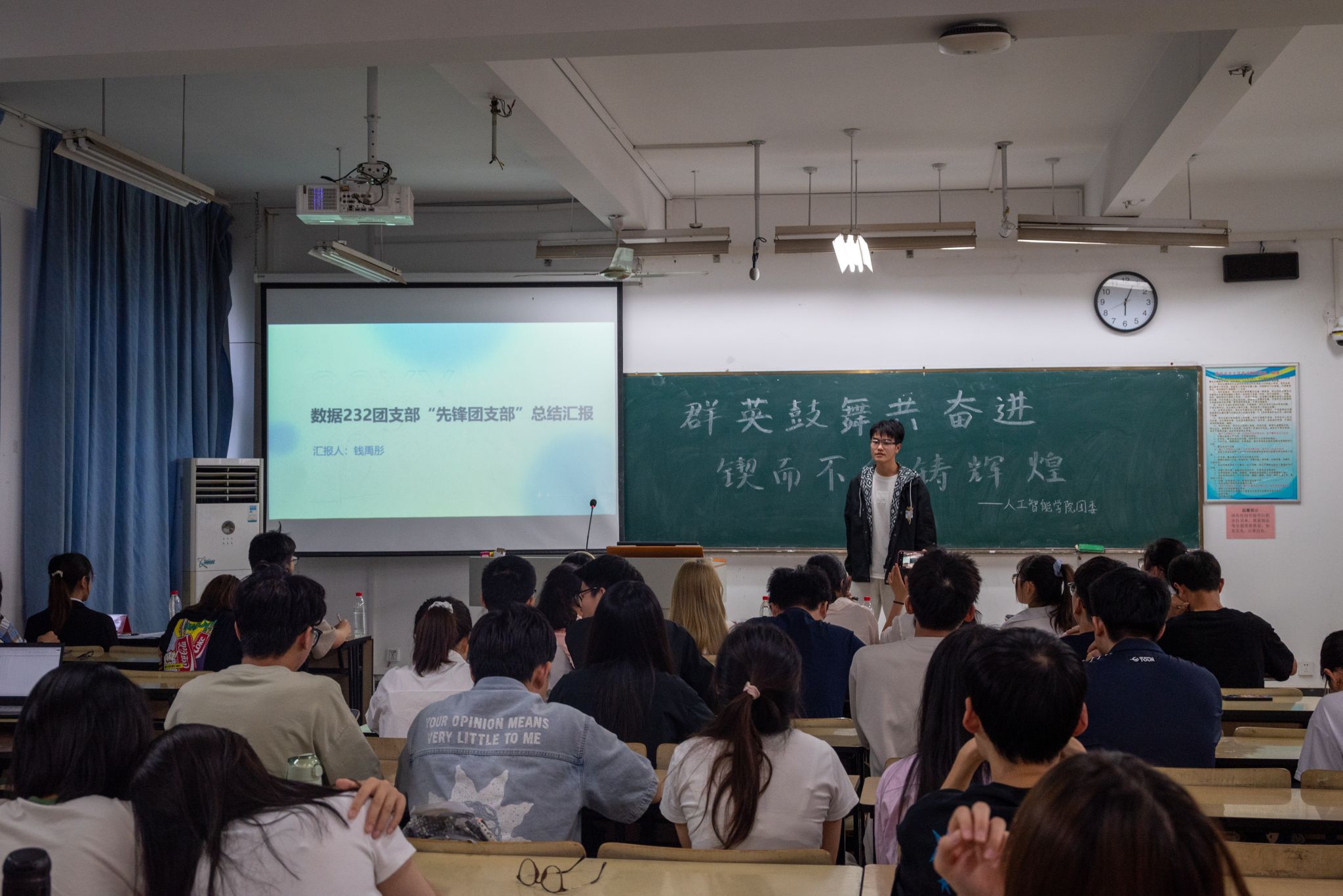 会议伊始,各班团支书依次上台,围绕“3+X”等支部基础及特色工作进行了总结汇报。现场气氛热烈,掌声不断,参会代表都为学院基层团组织在“联系青年、凝聚青年、扎根青年”道路上所取得成就而感到由衷的自豪。