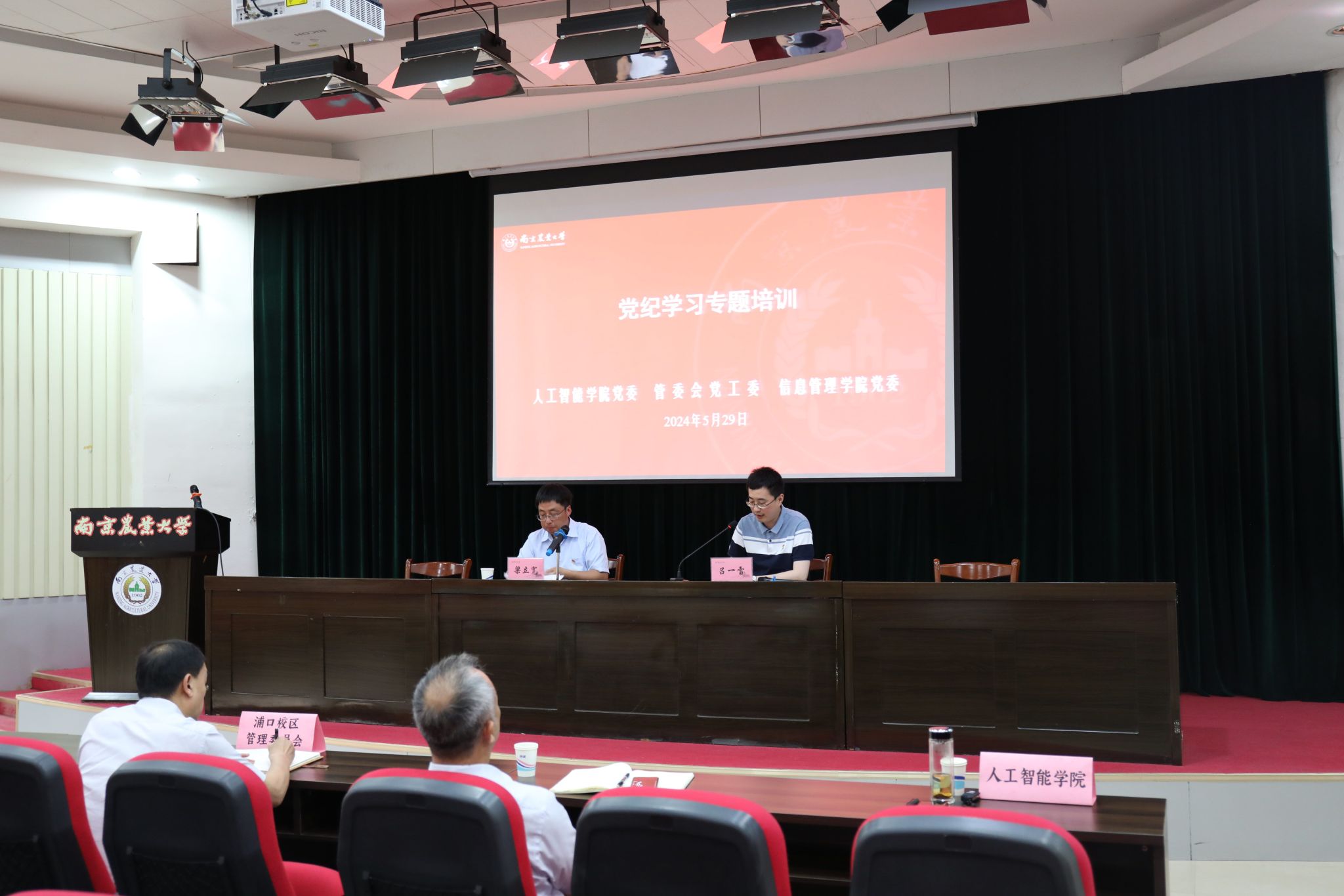 党委联合浦口校区管委会党工委、信息管理学院党委,共同举办党纪学习专题培训,校监察处副处长(主持工作)、纪委办公室副主任(监督检查室主任)梁立宽应邀作专题辅导报告。三家单位领导班子成员、教职工党员参加培训。培训会由av影片