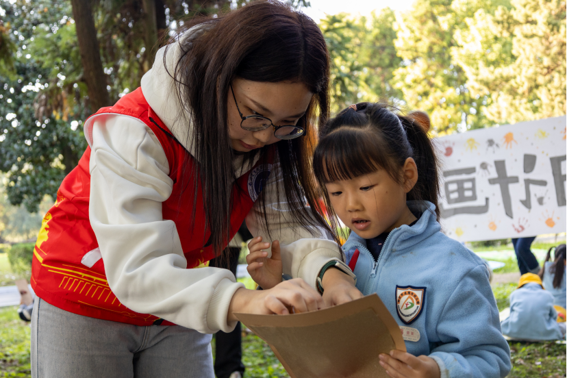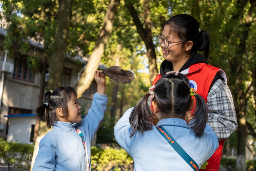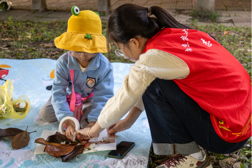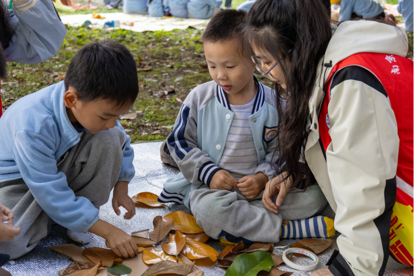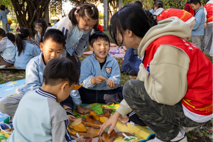 在一阵阵充满童稚的告别声中,小朋友们与志愿者们依依不舍地挥手作别,手中紧握着与哥哥姐姐们携手创作的落叶拓印作品,心中满载着这段纯真岁月留下的美好记忆,为这段经历画上了温馨的句号。