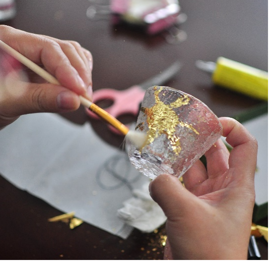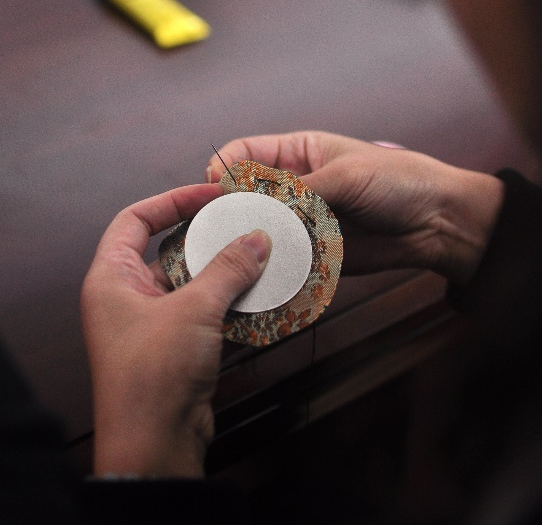 大家纷纷动手尝试,现场气氛热烈。在感受艺术熏陶的过程中,老师们相互帮助、分享创意、共同创作。在针线的舞动中专注细节、在铜箔的涂绘中大胆创作,最终一个个精美的云锦镜悄然成型,一只只独特的主人杯在手中绽放。