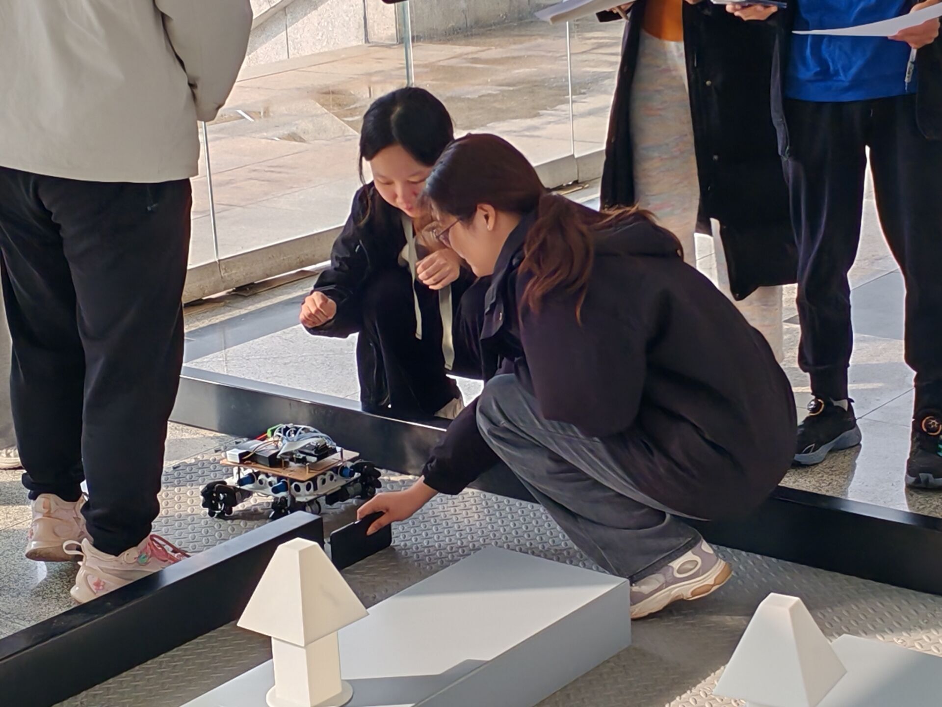 B类赛事在浦口校区开展,各小组需利用自制机器人对设置的模型果树开展对靶施药,现场评委依据完成的时间、农药利用率、覆盖程度、准确度等进行综合评判。经评审,共7支团队获推上级比赛。
