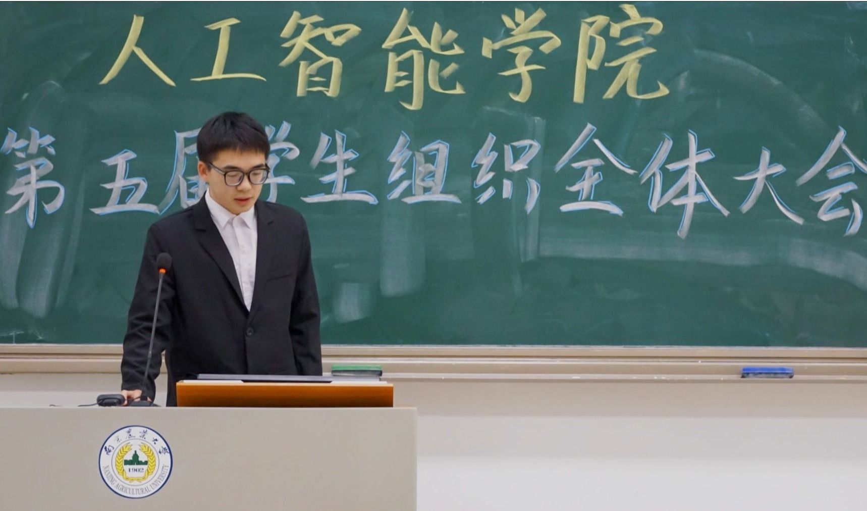 第五届学生组织主席团成员开始工作汇报。分党校副秘书长张耀波、学生团委副书记刘志亮、学生会执行主席冯小航、全媒体中心主任赵子函以及AI工坊主席徐浩然分别代表各自部门进行工作汇报,介绍各自部门的主要职能、特色活动以及2023-2024学年度举办的各类活动和获奖情况,充分展示各部门的辛勤付出和取得的显著成果。