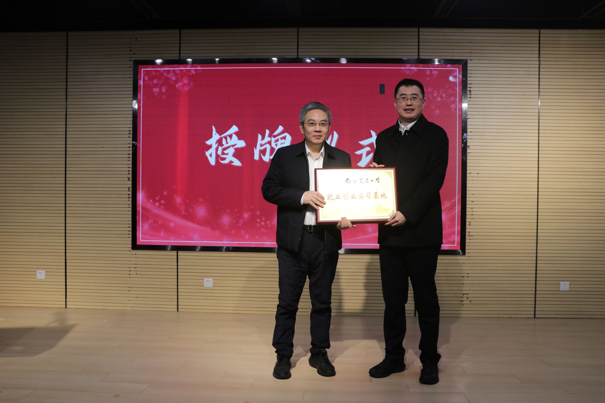 会上,吕一雷与刘玲燕代表双方签署合作协议。吕一雷代表学校向韶华工坊授予南京农业大学就业创业实习基地铜牌。