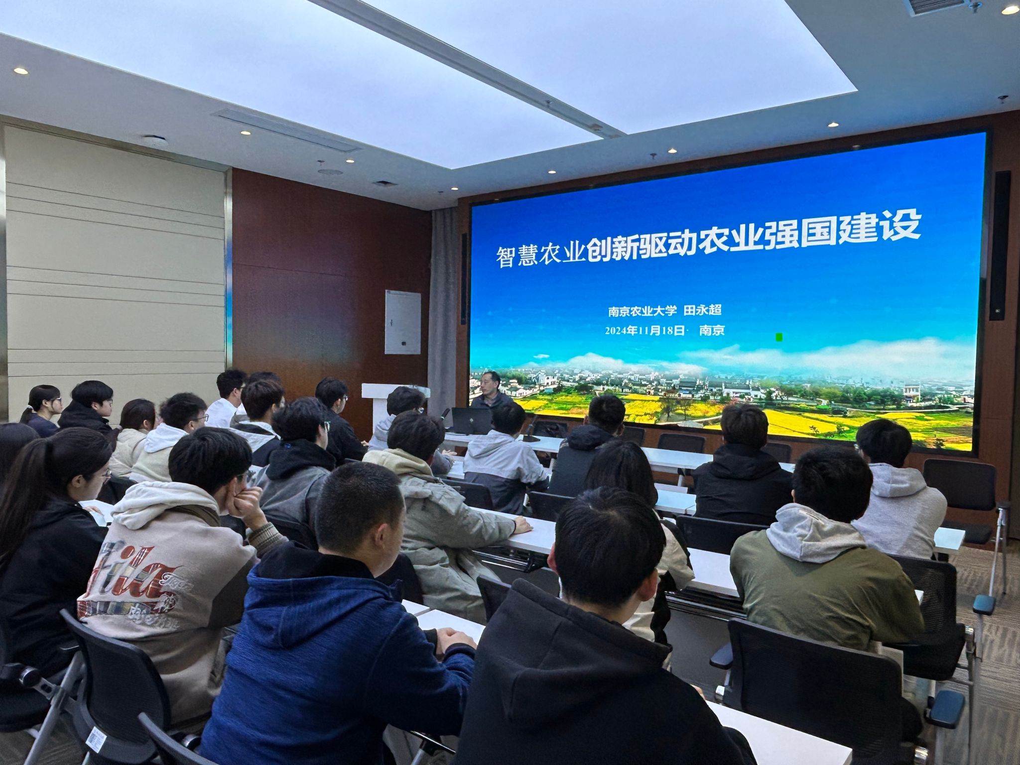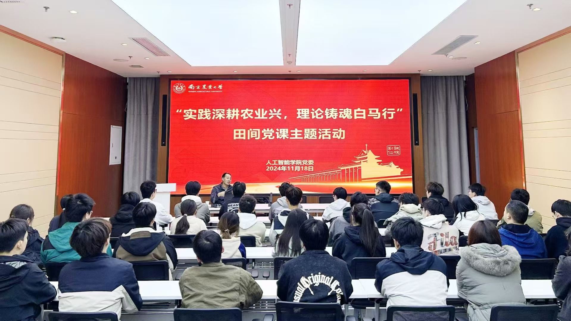“智慧农业已经进入4.0时代,智慧农业在提高农业生产效率、保障粮食安全、促进可持续发展、增强竞争力等方面发挥着重要作用,是建设农业强国不可或缺的一部分。愿我们有更多的同学带着强农兴农的初心,带着知农爱农的热忱投身服务国家乡村振兴事业!”11月18日晚,学院在白马基地开展“实践深耕农业兴,理论铸魂白马行”田间党课主题活动,党委书记田永超教授应邀为2022级党员、入党积极分子讲授微党课《智慧农业创新驱动农业强国建设》,激励同学们拥抱变化,勇于创新,服务社会,奉献国家,为建设一个更加繁荣、更加强大的农业强国而奋斗。