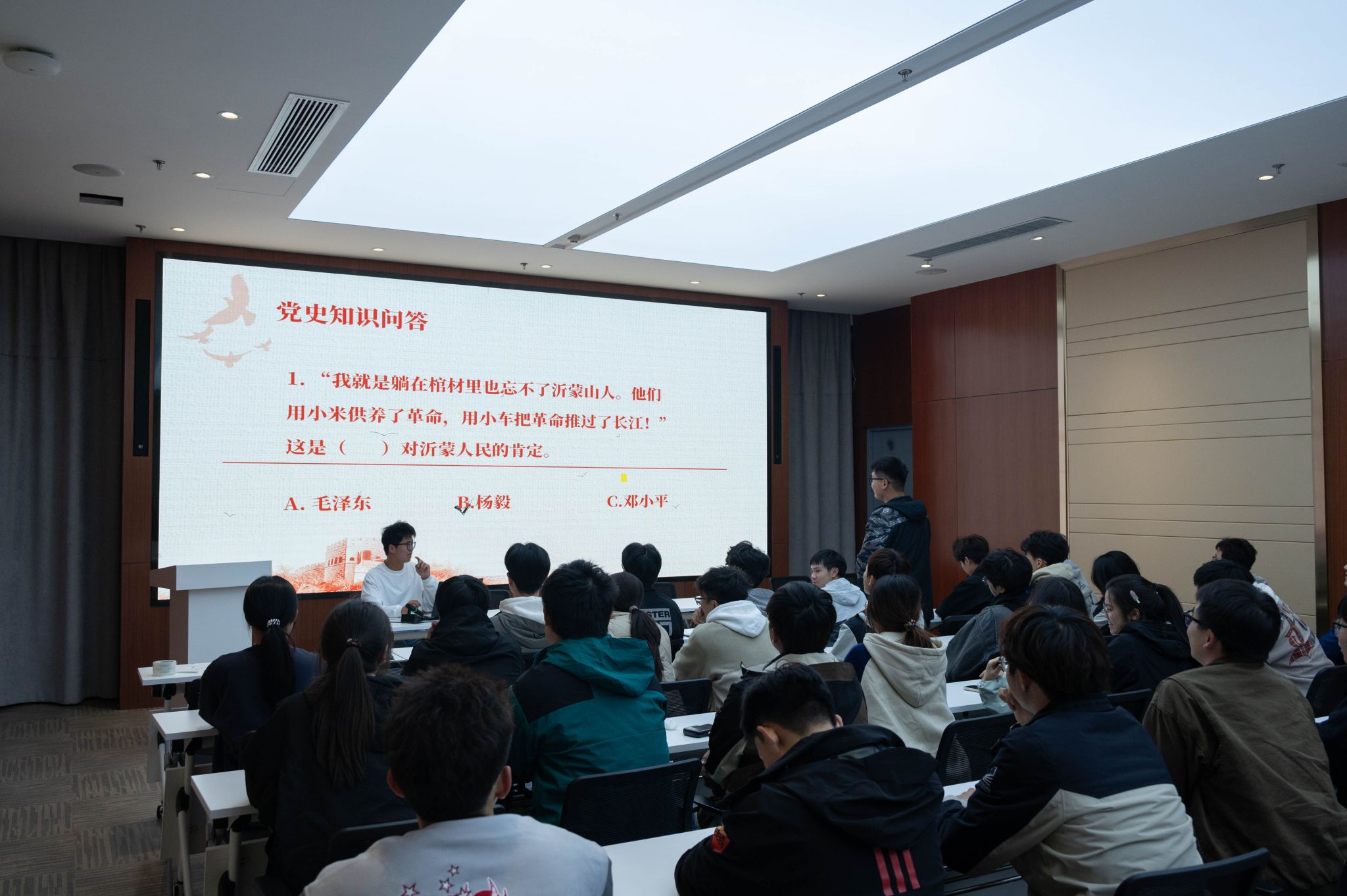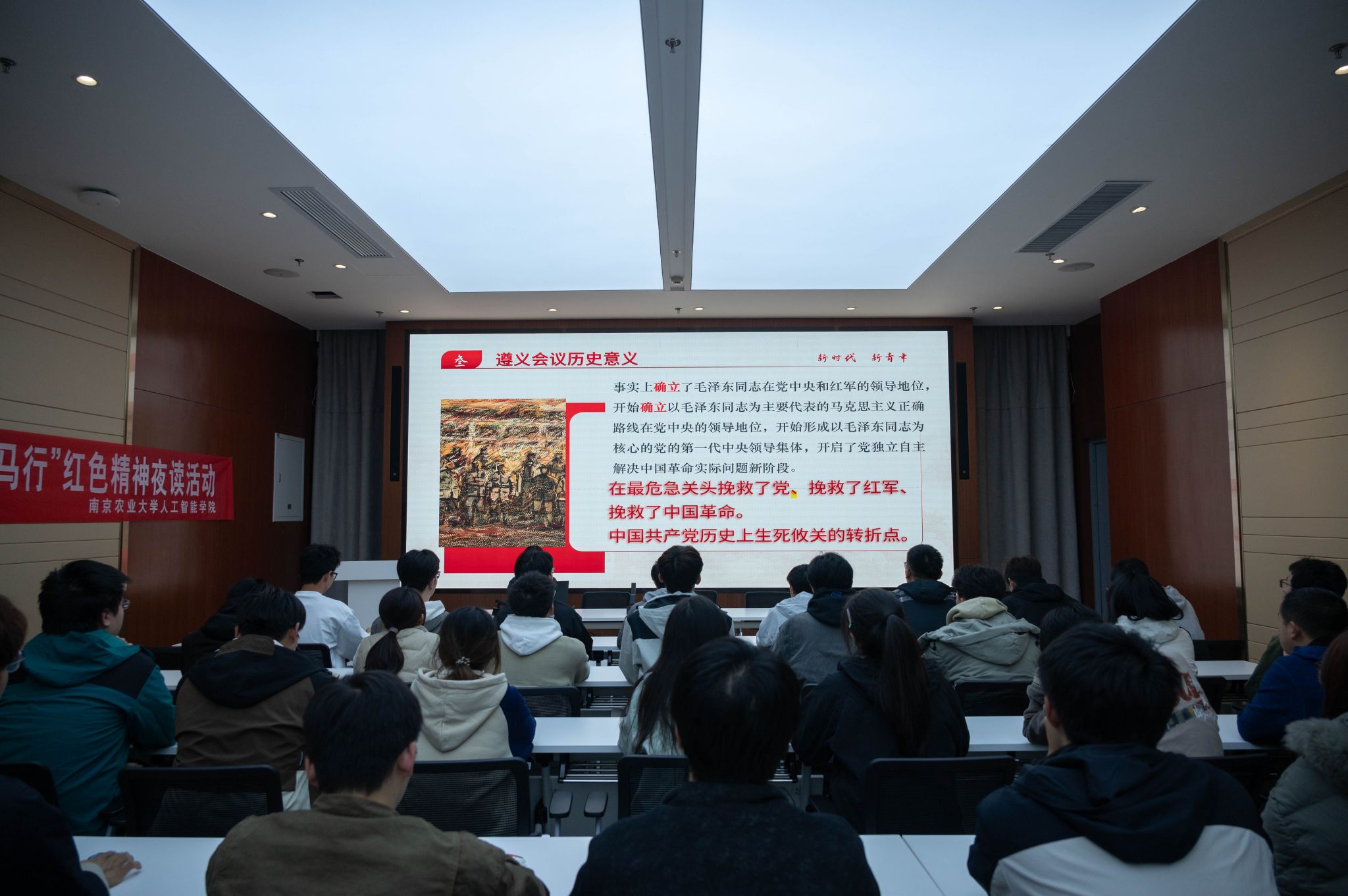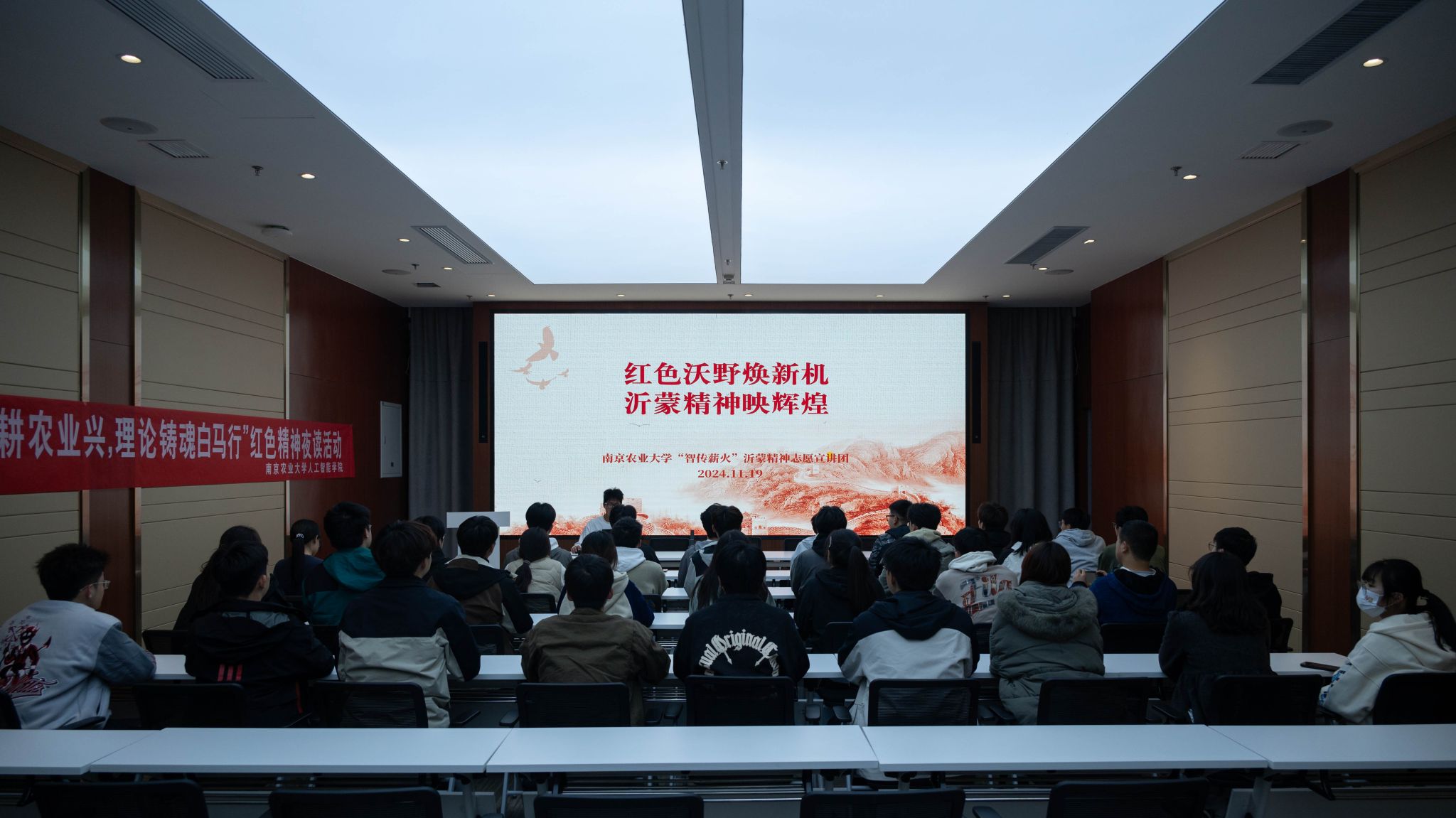 11月19日晚,学院入围2024年全国大学生遵义会议精神志愿宣讲团、沂蒙精神志愿宣讲团的同学组织“实践深耕农业兴,理论铸魂白马行”红色精神夜读活动。“党群同心、军民情深、水乳交融、生死与共”,沂蒙精神承载着山东临沂地区人民在战争年代不屈不挠、勇于奉献的伟大品质;“坚定信念、坚持真理、独立自主、团结统一”,这十六个字不仅是遵义会议的历史总结,更是中国共产党在长期革命实践中形成的宝贵精神财富。同学们纷纷表示,要将这两种精神转化为学习、工作和生活中的动力,积极投身农业农村现代化建设,为实现国家的繁荣富强和民族的伟大复兴贡献自己的力量。