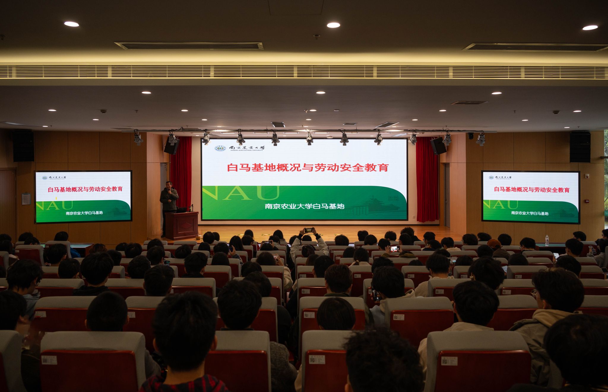 实验室与基地处科教服务科科长张桂荣老师为同学们讲授科普讲座——“白马基地概况与劳动安全教育”,向学生们详细介绍了白马基地的基本情况与运作模式,并着重强调了在劳动过程中安全的重要性,提醒同学们需时刻保持警惕,遵循安全规范,以确保自身及他人的安全。