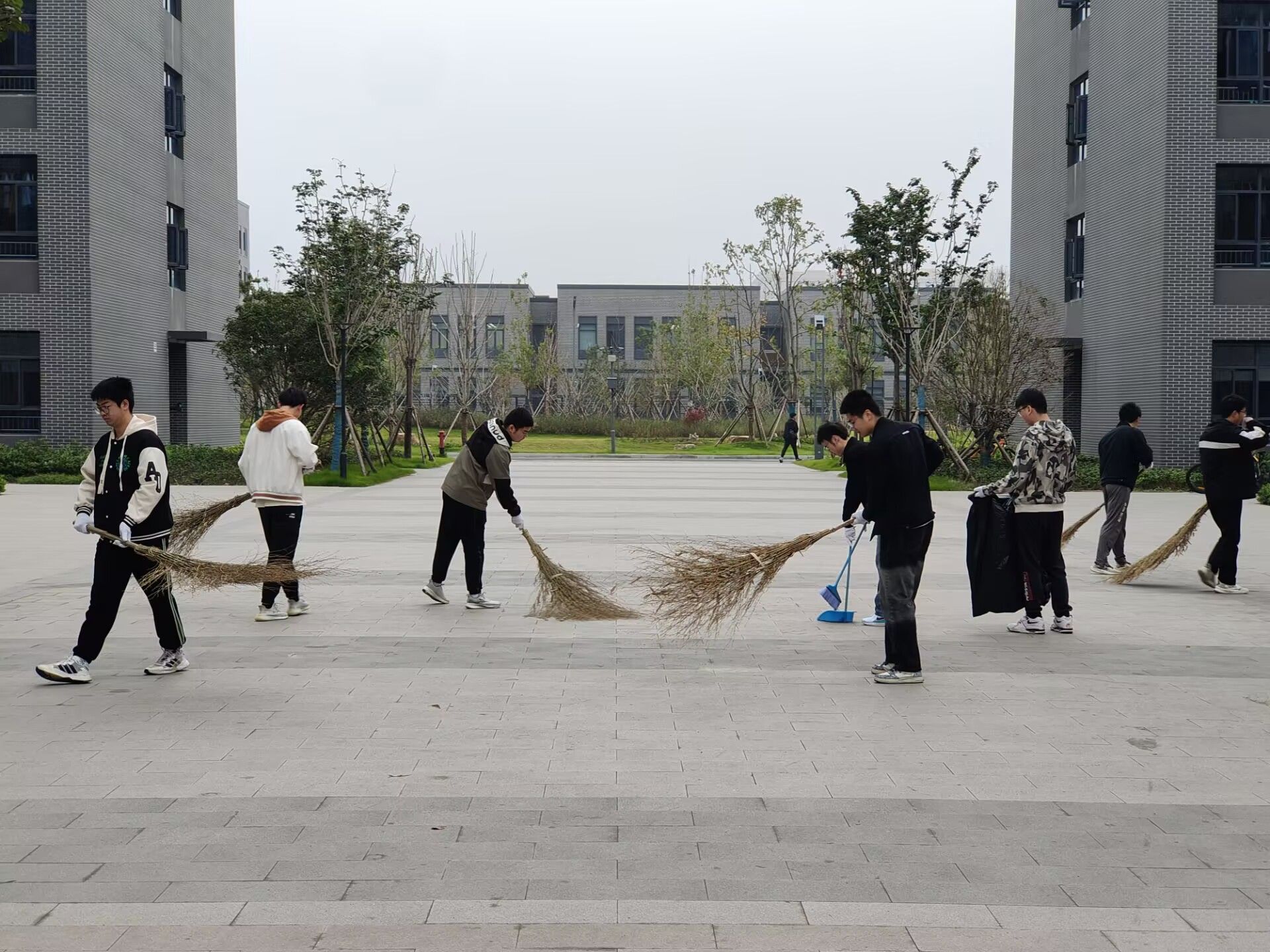 在滨江校区的校园劳动实践中,同学们动手实践、出力流汗、接受锻炼、磨炼意志。滨江校区的各个角落——从教学楼到北苑生活区,再到图书馆周边及校园的主干道,每一处都有他们劳动的身影,同学们各司其职、协同合作,为校园卫生环境保持贡献积极力量。