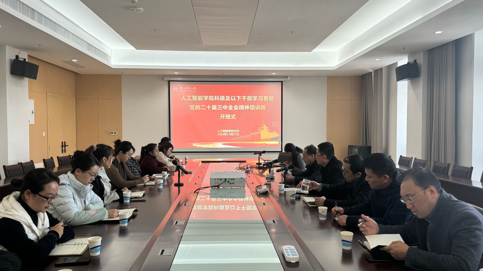 为深入学习贯彻党的二十届三中全会精神,引导学院教职工干部深刻领会和把握全会精神,推动教育培训同质等效,11月27日,学院党委举行科级及以下干部学习贯彻党的二十届三中全会精神培训班开班式。学院党委书记田永超、副院长(主持工作)陆明洲、党委副书记吕一雷、副院长刘杨,自动化系主任刘璎瑛、电子信息系主任邹修国、计算机系主任胡滨,办公室、学生工作办公室全体行政人员参加开班式。开班式由学院党委副书记吕一雷主持。