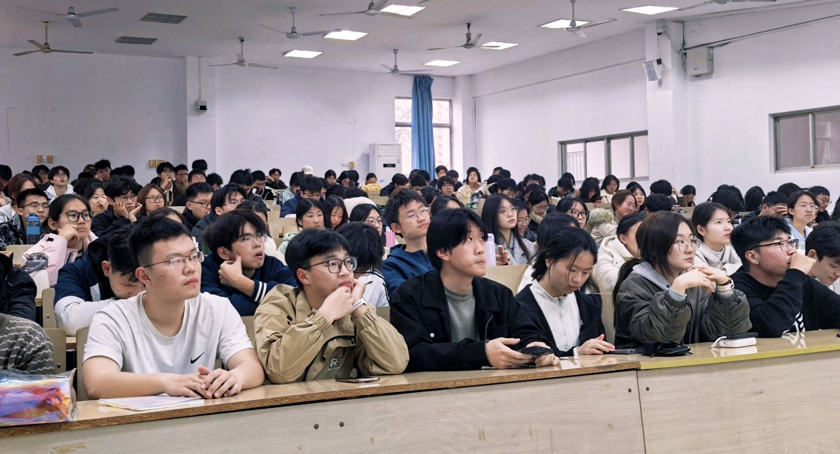 现场氛围热烈,全体同学们秩序井然地就座,目光高度一致地汇聚于讲台之上。随后,在问答环节,同学们就实验室任务分配、学习目标等问题踊跃发问。