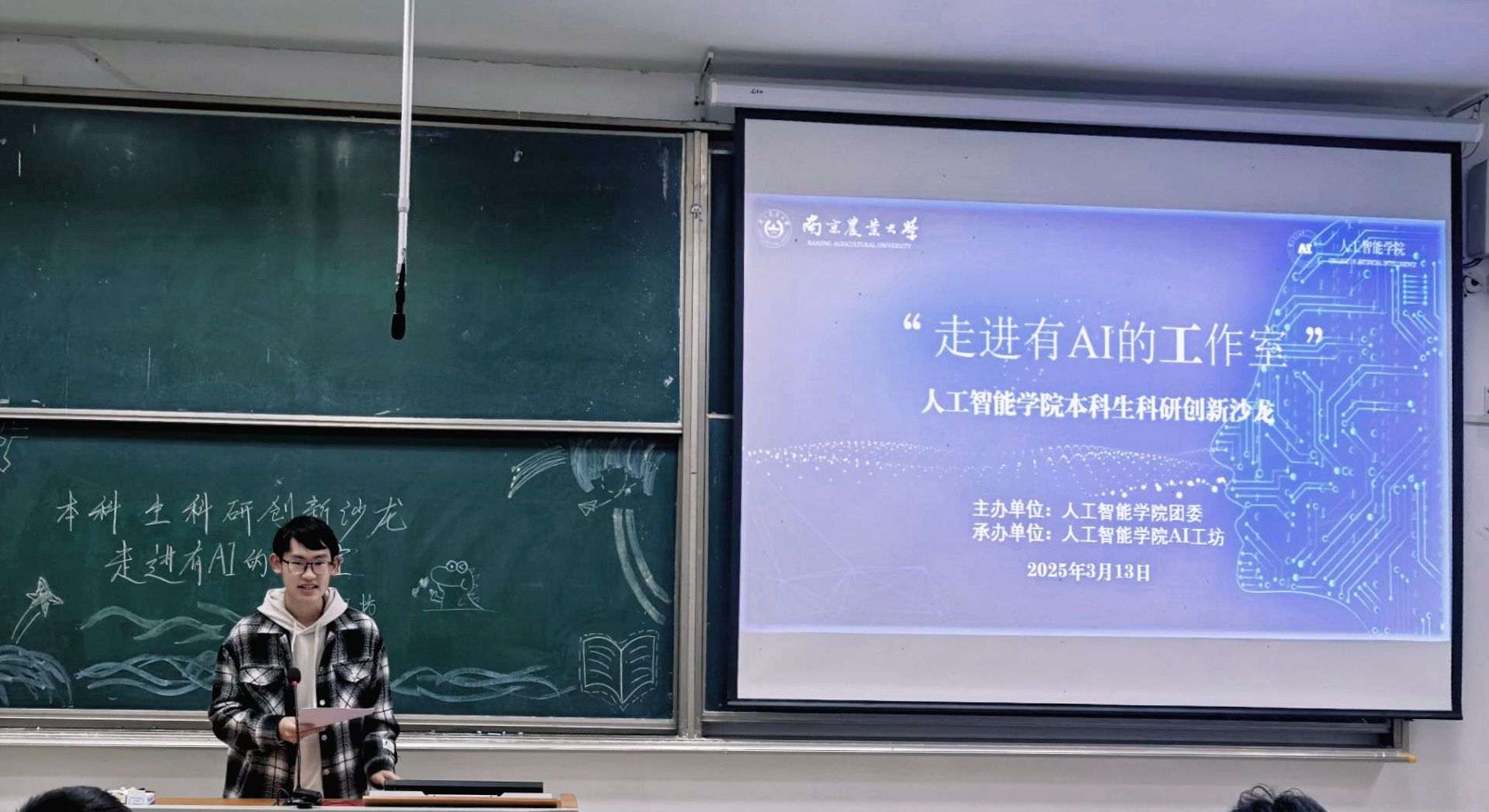 于汇贤楼C102举办本科生科研创新沙龙之“走进有AI的工作室”专场活动。