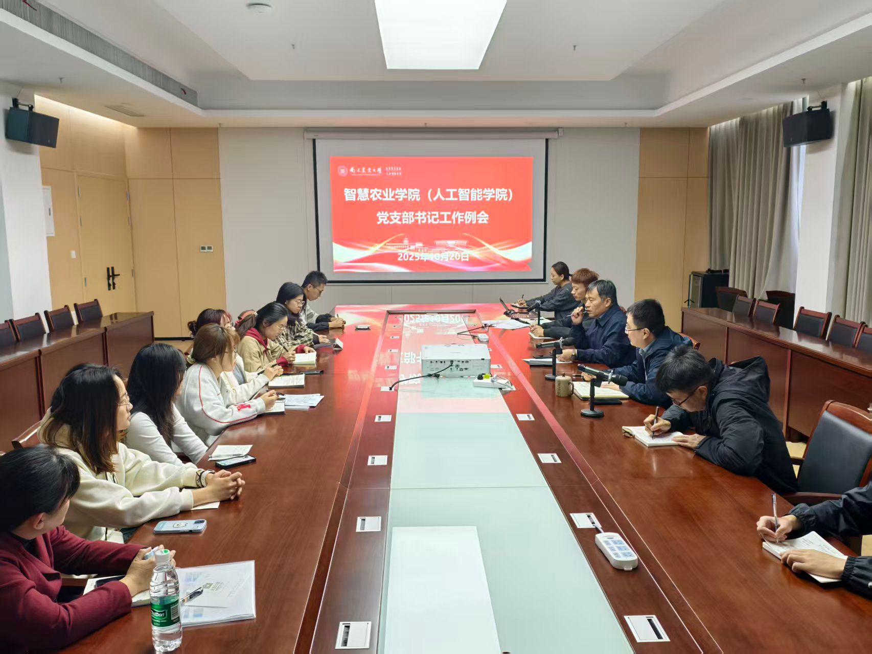 2025年10月20日下午,学院在A863会议室召开党支部书记工作例会。学院党委书记李骅、党委副书记吕一雷、专职组织员张鸣以及全体师生党支部书记参加会议。