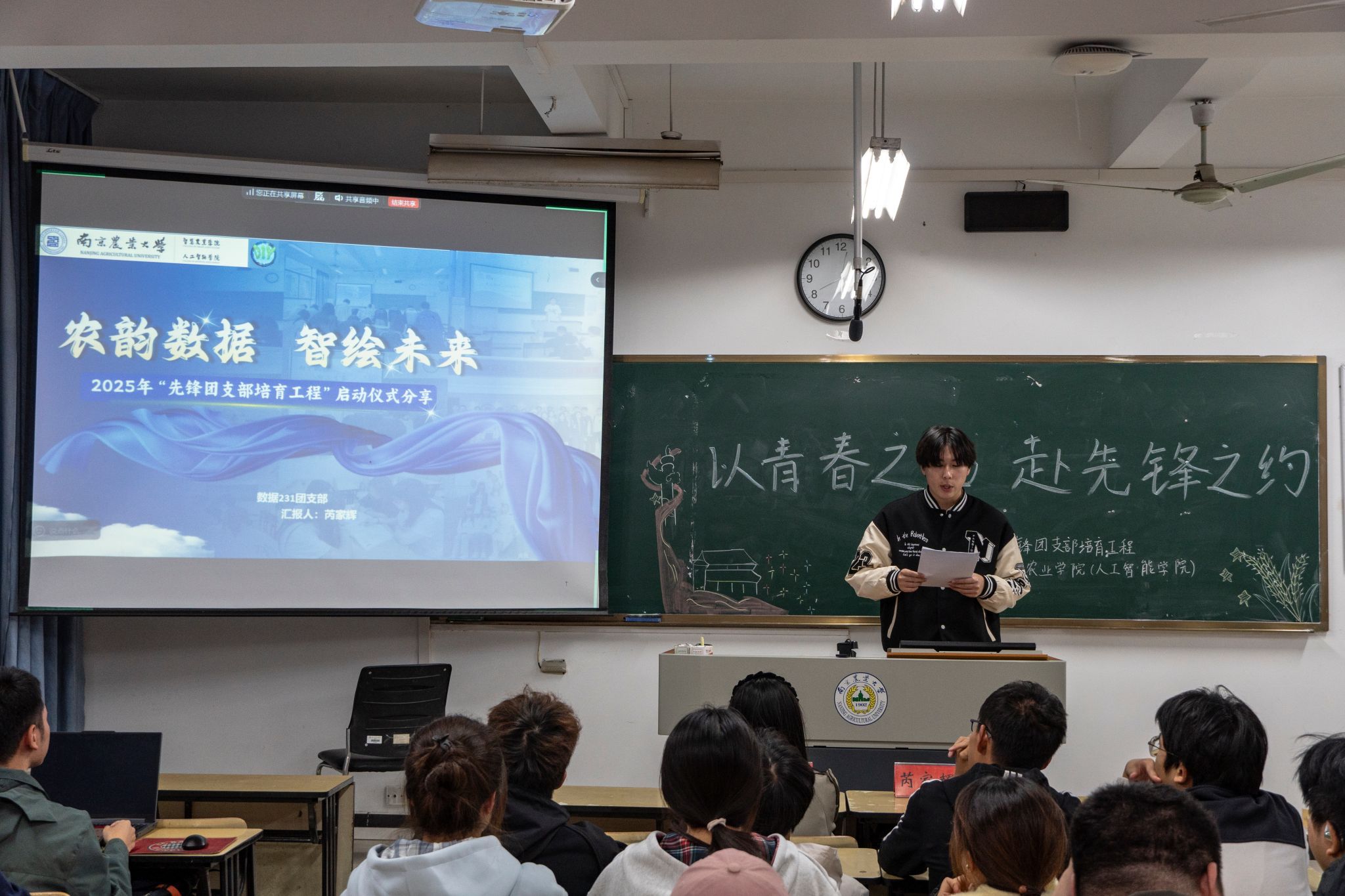 随后,连续两年斩获校级杰出项目(全校年度仅评选十个)的优秀团支部代表——数据231班团支书芮家辉同学,以数据231团支部先锋团支部项目建设实践与探索为例作经验分享。他从“思想引领常态化、组织生活规范化、实践项目品牌化”三个方面,生动展示了所在支部在理论学习、团日活动、创新创业等方面的创新做法与显著成效。通过企业走访、专业比拼等特色活动案例,为各支部提供了可复制、可推广的鲜活范例,引发全场热烈共鸣。