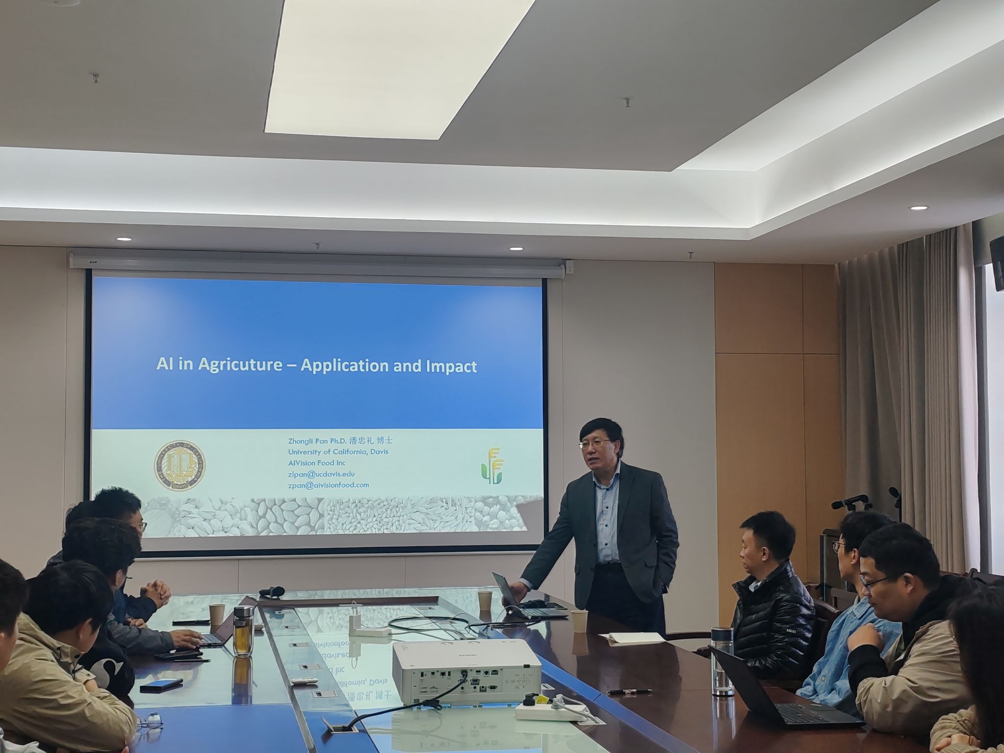 主办的“智汇大讲堂”第三期在滨江校区12号楼A863顺利举行。本期报告特邀美国加州大学戴维斯分校教授、AIVISION FOOD INC创始人兼CEO潘忠礼博士担任主讲嘉宾,报告主题为《A1 in Agriculture – Application and Impact》。报告由av影片