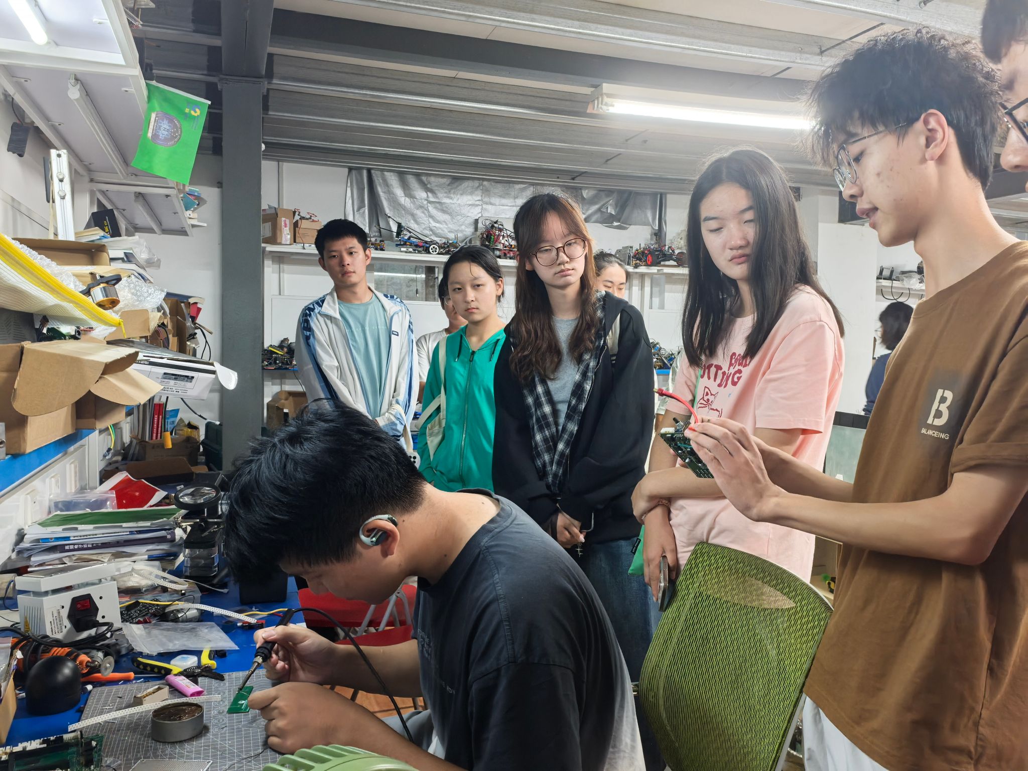 在计算机与大数据工作室,负责人向大家展示了当前在研项目“Chirbox——Lora网络测试平台”,并讲解了其在低功耗广域网络通信方面的应用前景。工作室还介绍了在“蓝桥杯”“挑战杯”等赛事中的参赛经验,鼓励对计算机、电子信息方向感兴趣的同学加入项目组,参与实际研发,积累项目经验。