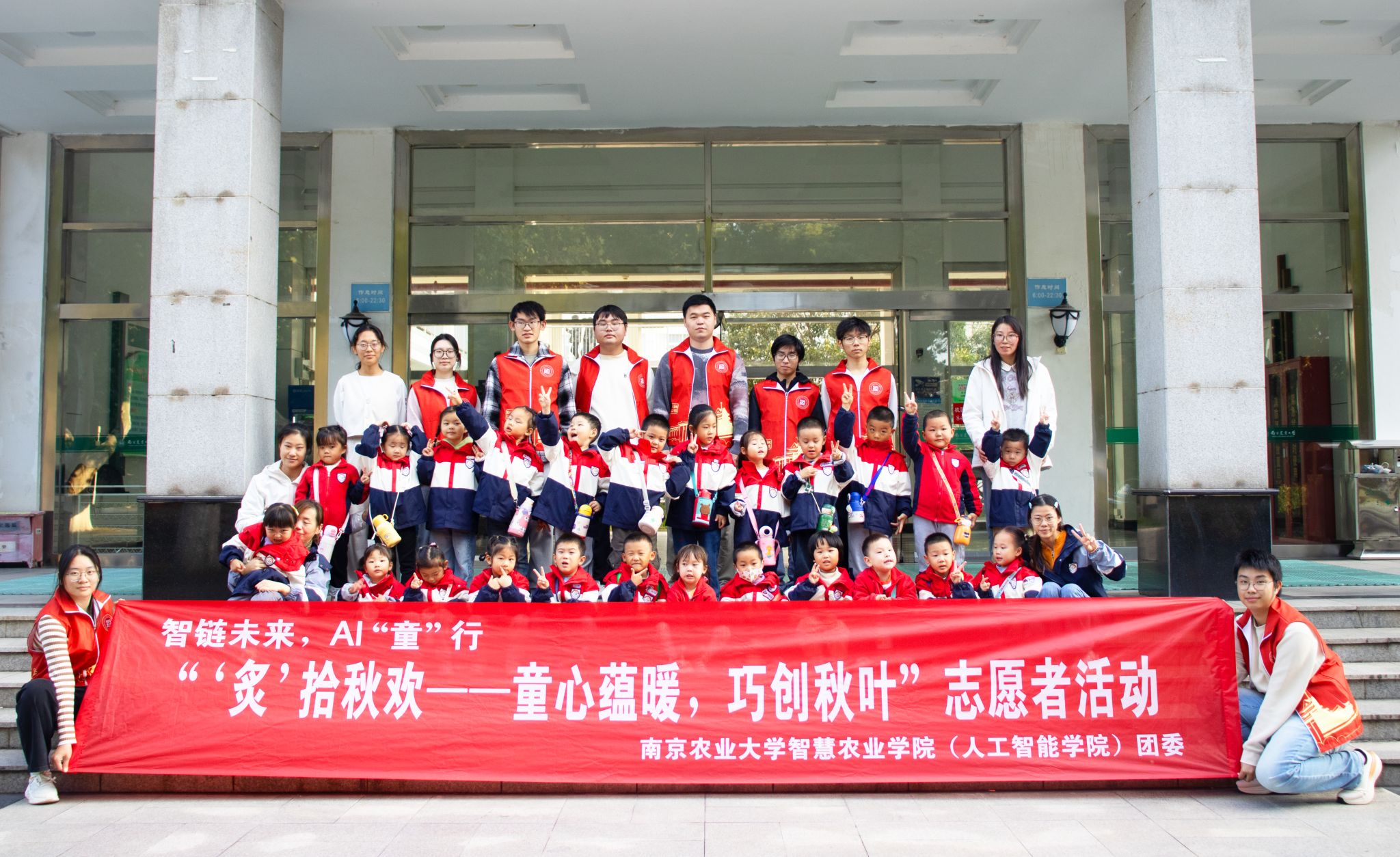 团委联合点将台路幼儿园,在浦口校区温情启幕“炙拾秋欢——童心蕴暖,巧创秋叶”主题志愿服务活动。作为学院“智链未来,AI‘童’行”志愿服务项目的特色环节,本次活动以校园秋景为天然课堂,通过沉浸式自然观察与创意艺术创作,为20余名幼儿打造了一场融合自然之美与人文温度的成长之旅,彰显了高校服务社会、赋能成长的责任担当。