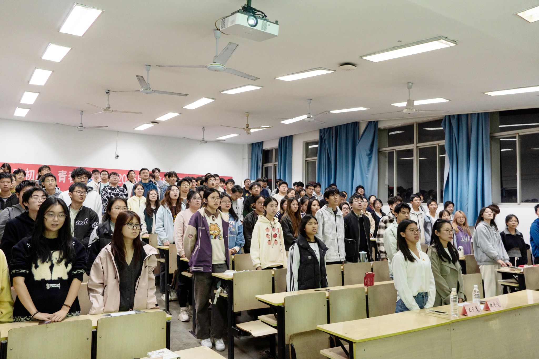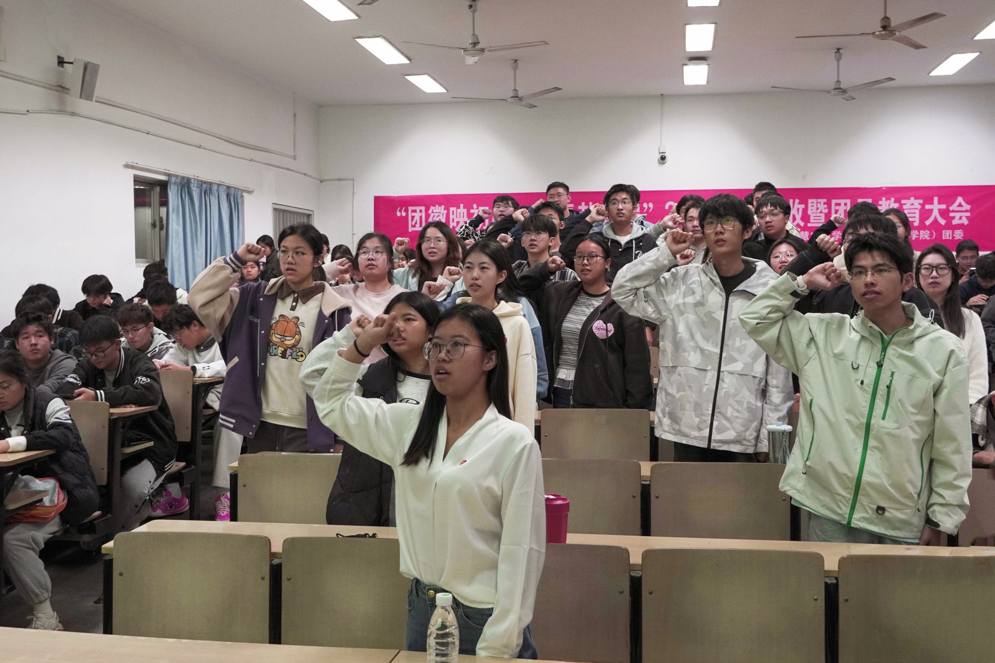 为进一步加强团组织建设,增强青年团员的光荣感与使命感,11月11日晚,av影片 在浦口、滨江两校区同步举办“团徽映初心,青春赴新程”团员接收暨团员教育大会。本科生专职辅导员魏宇宁、学生团委副书记王子墨出席活动,学院24级、25级各团支部团支书、班长、2025年新发展团员及入团积极分子代表共计200余人参会。