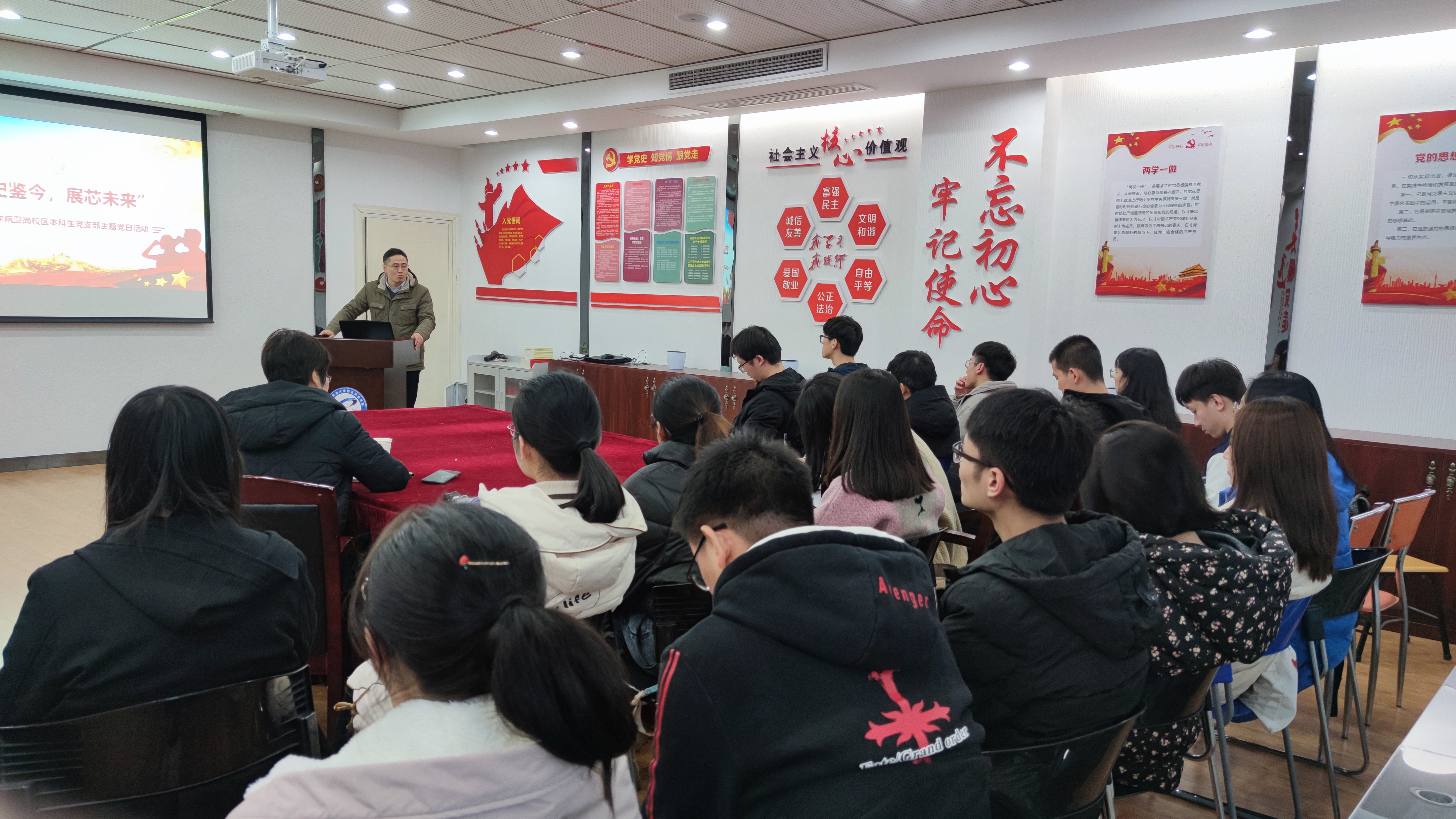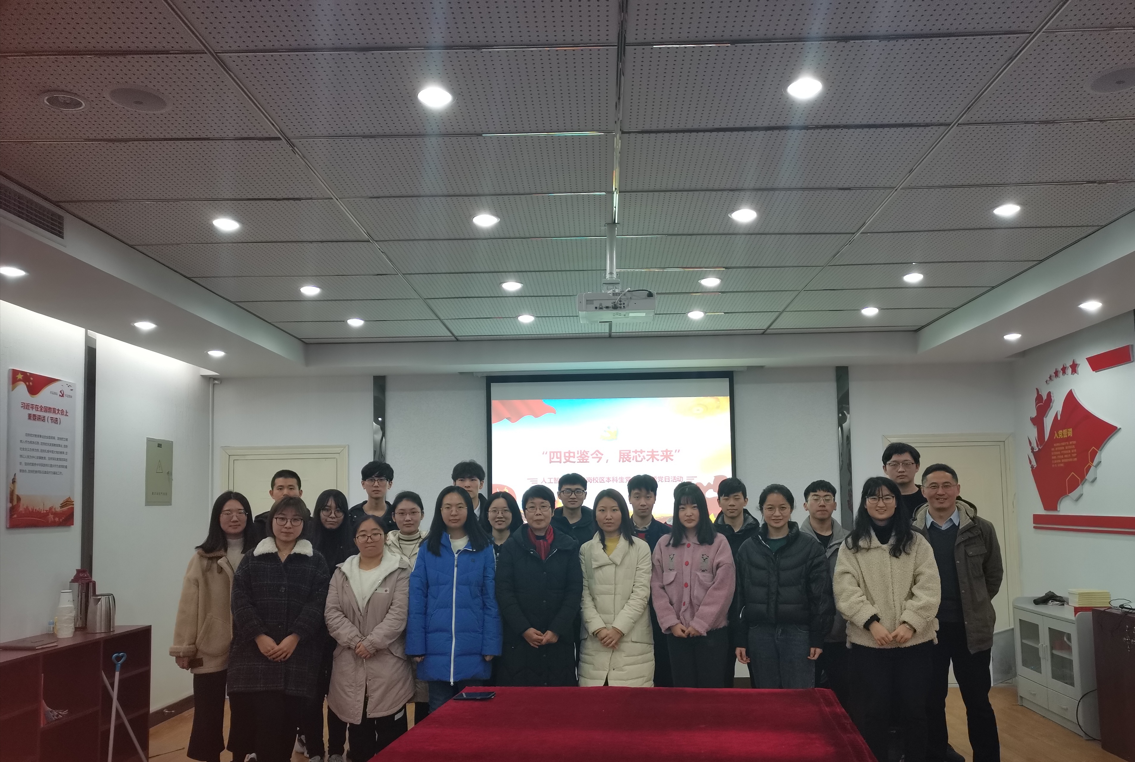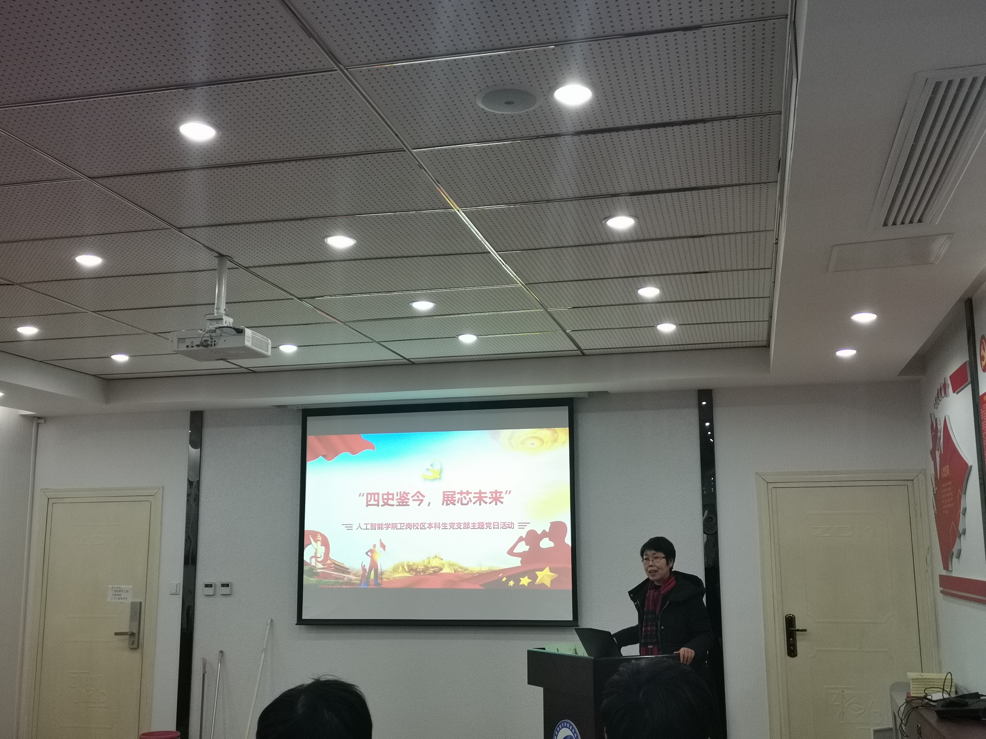 卫岗校区本科生党支部在教学楼A609举办“四史鉴今 展芯未来”主题党日活动。实验室与基地处副处长石晓蓉同志莅临指导。