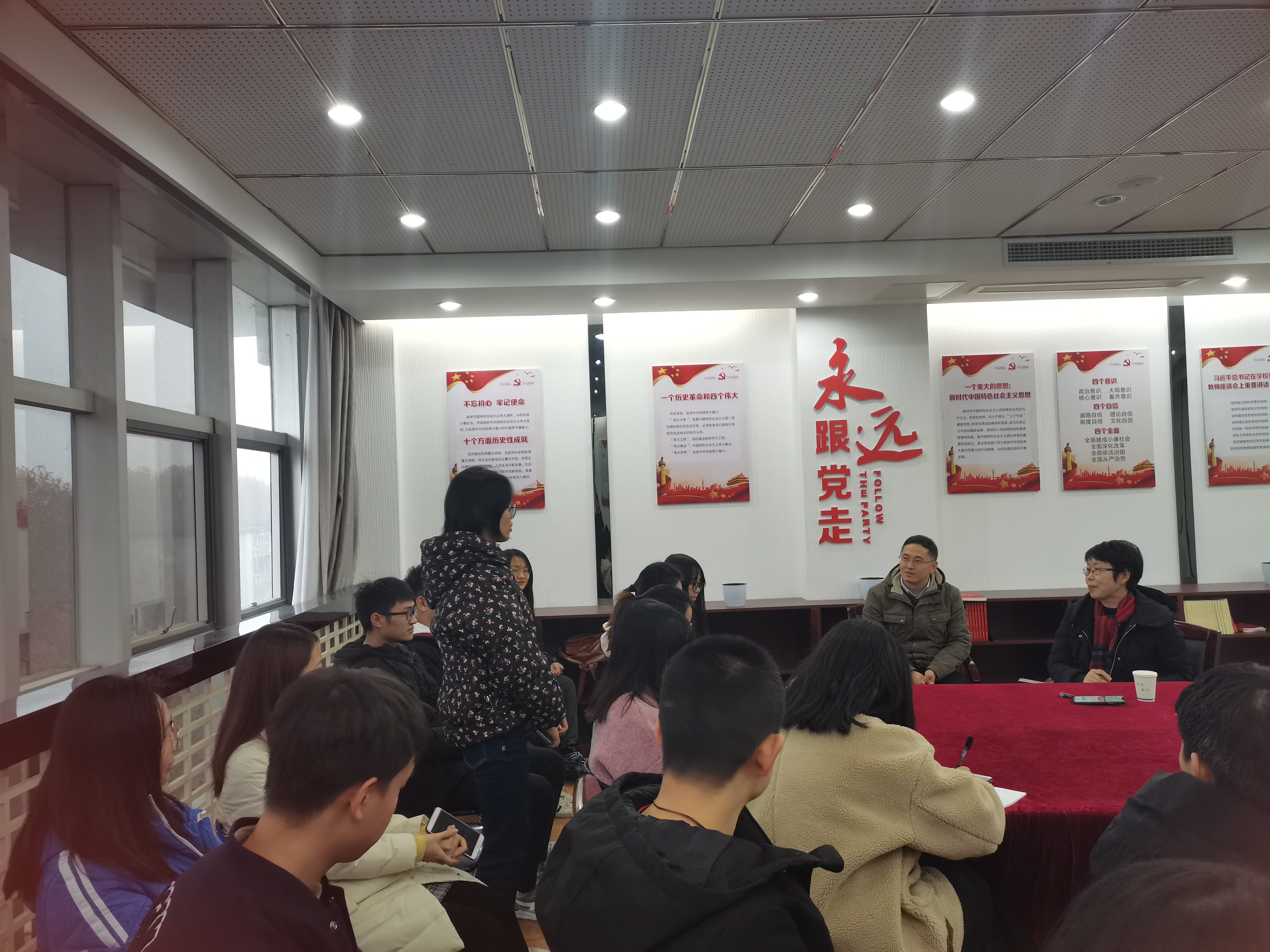 最后,石晓蓉勉励支部党员同志坚持“四史”学习,坚定“四个自信”,既要脚踏实地,也要仰望星空,发愤图强,学好专业,勇担使命。