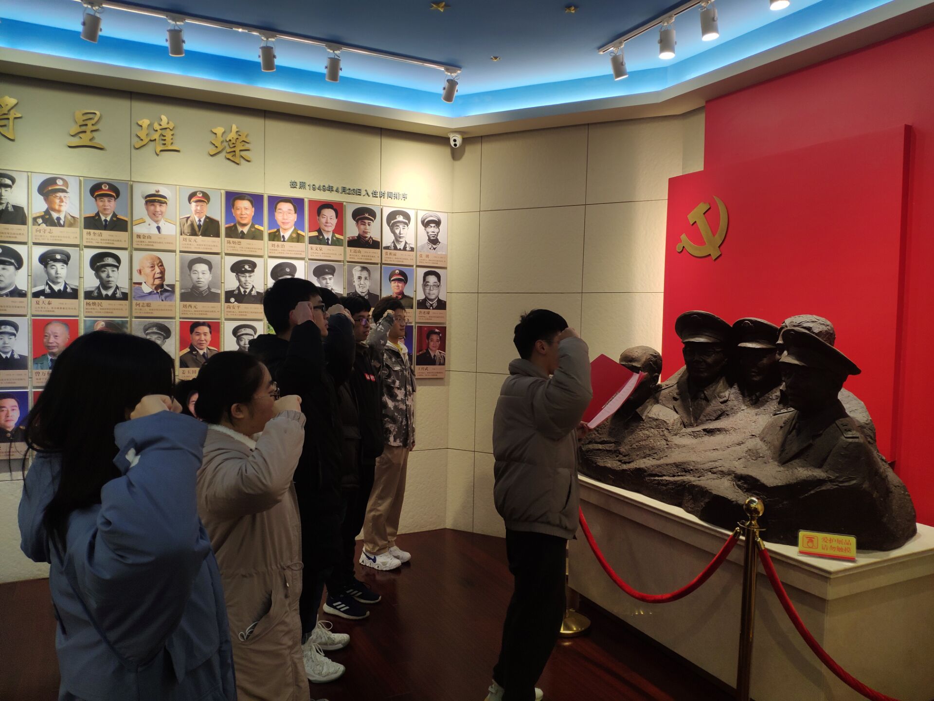 在讲解员的带领下,党员们参观了这座全国唯一的社区将军馆。整个将军馆分为序厅、沙场雄威、将军的晚年生活3个部分,展示了在颐和路社区居住过的老将军们在战争年代、和平时期为人民军队建设立下的不朽功勋以及晚年生活中老有所为的精神风貌。参观党员深刻感受到了诸位共和国老将军矢志不渝,为国浴血的革命精神。全体预备党员面向党旗进行庄严的入党宣誓。