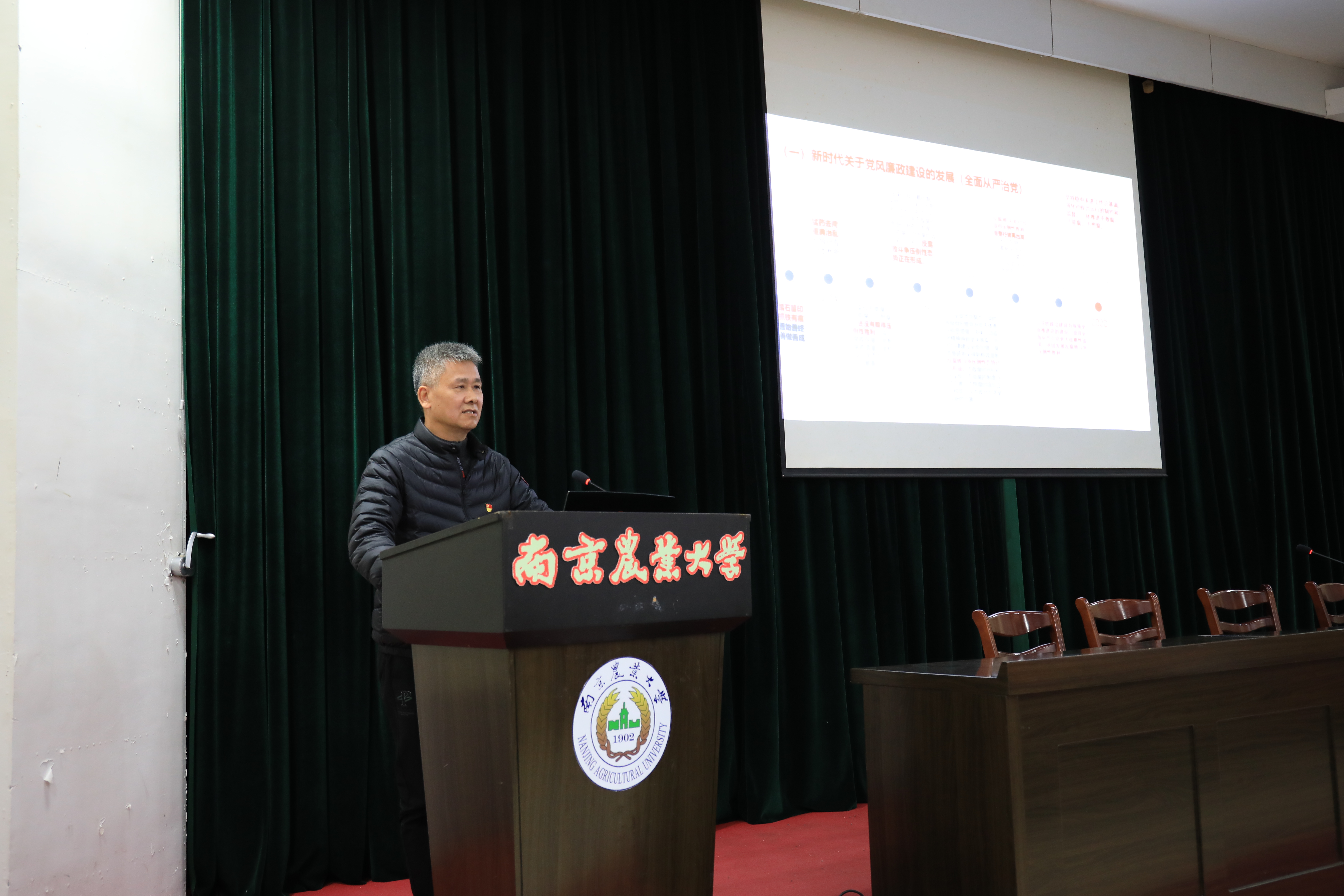 党委在浦口校区图书馆报告厅开展专题警示教育。学院副处级组织员张和生作“坚持底线思维,强化立德树人”专题报告。学院全体教职工参会。