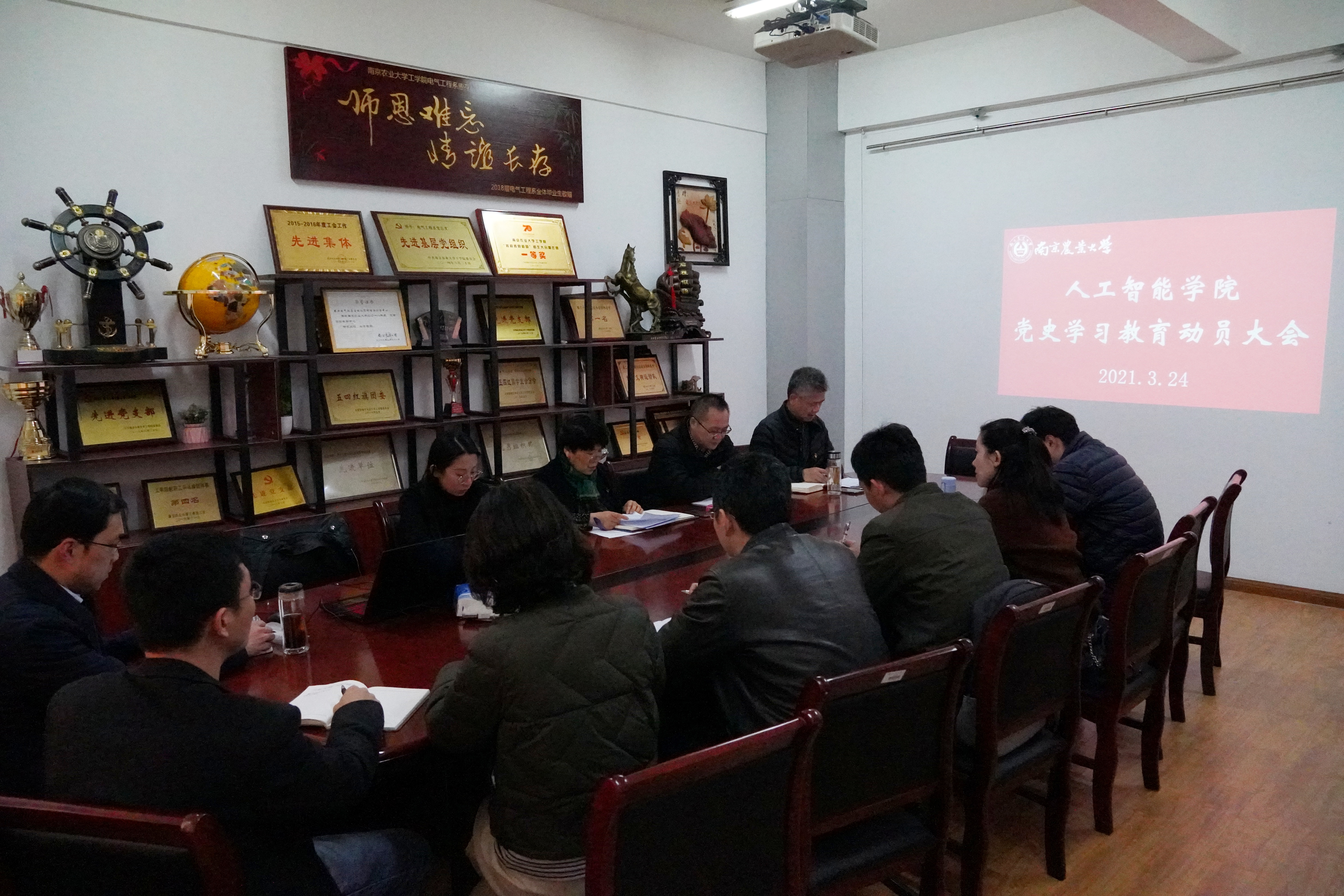 党委在育贤楼B311召开党史学习教育动员大会。院党委副书记(主持工作)沈明霞主持会议,副书记卢伟,党委委员张和生、刘杨、任守纲、陆明洲出席会议。全体党支部书记、辅导员参加学习。