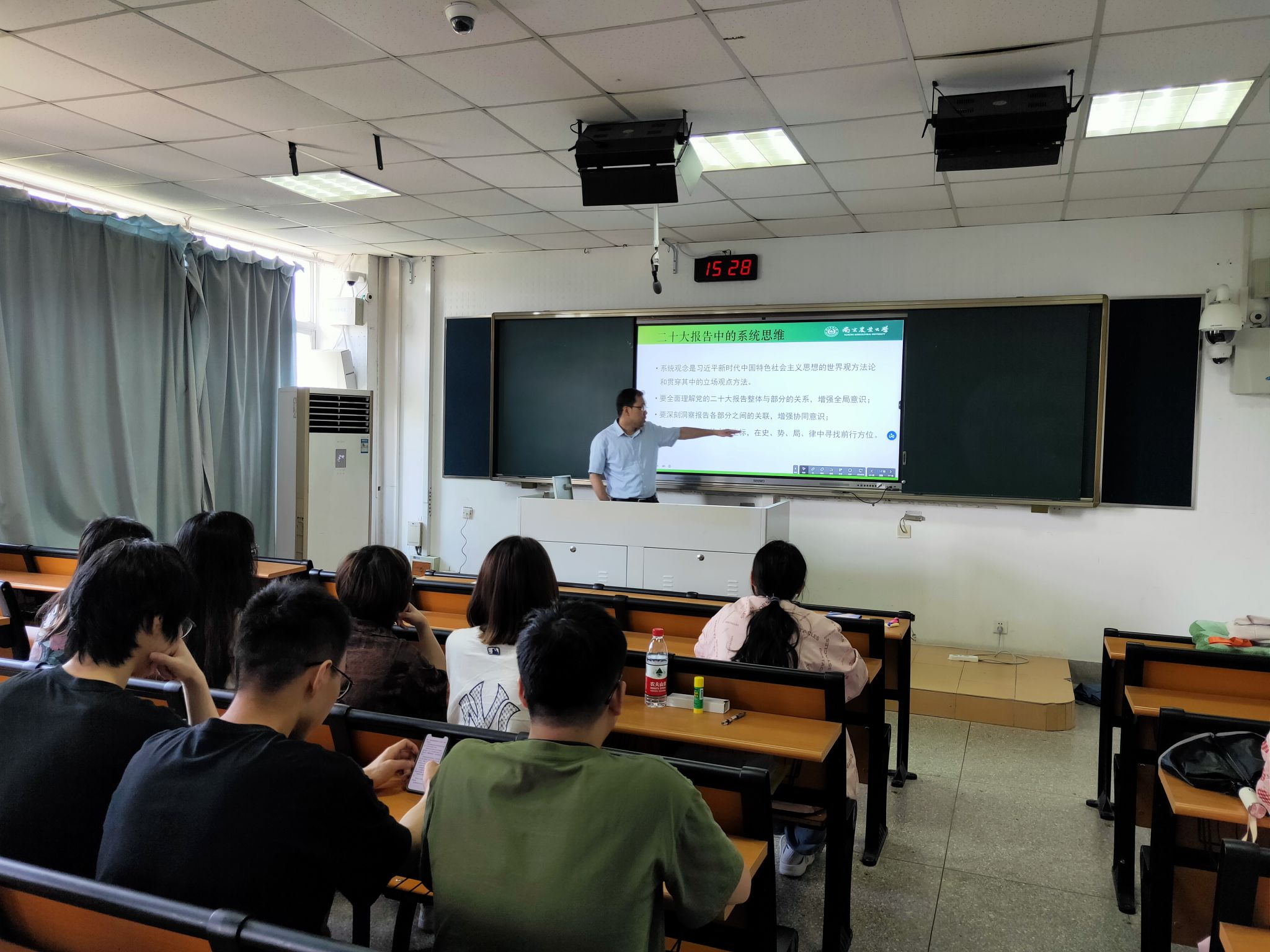 副院长刘杨为联系党支部讲授《用系统观念理解把握党的二十大精神》专题党课。他通过对系统和系统论的介绍,说明了系统观念是习近平新时代中国特色社会主义思想的世界观方法论和贯穿其中的立场观点方法。他表示要全面理解党的二十大报告整体与部分的关系,增强全局意识;要深刻洞察报告各部分之间的关联,增强协同意识;要准确把握报告的方位坐标,在史、势、局、律中寻找前行方位,并鼓励大家用系统观念谋划思考人生,在史、势、局、律的方位坐标中,寻找自己前行的“位”。