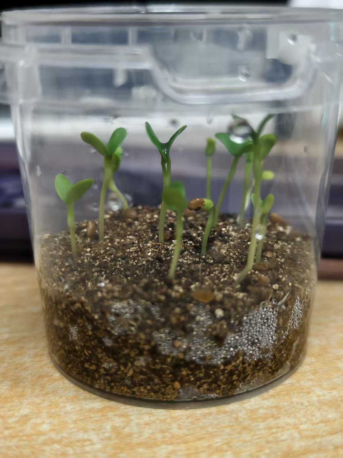 经过七天的精心照料和坚持线上打卡,一颗颗小小的种子破土而出,冒出嫩芽,茁壮成长,这让每位栽培者都感受到绿色生命成长的喜悦,大家通过线上活动群一起交流栽培的心得体会,短短七天,小小的种子却牵动着大家的心弦,有位同学表示,“每天一睁眼就迫不及待地想看看种子的发芽情况”。从最初的满心期待到焦急等待,再到看到种子发芽时的欢呼雀跃,每一位参与者都深刻体会到了培育绿色生命的过程。