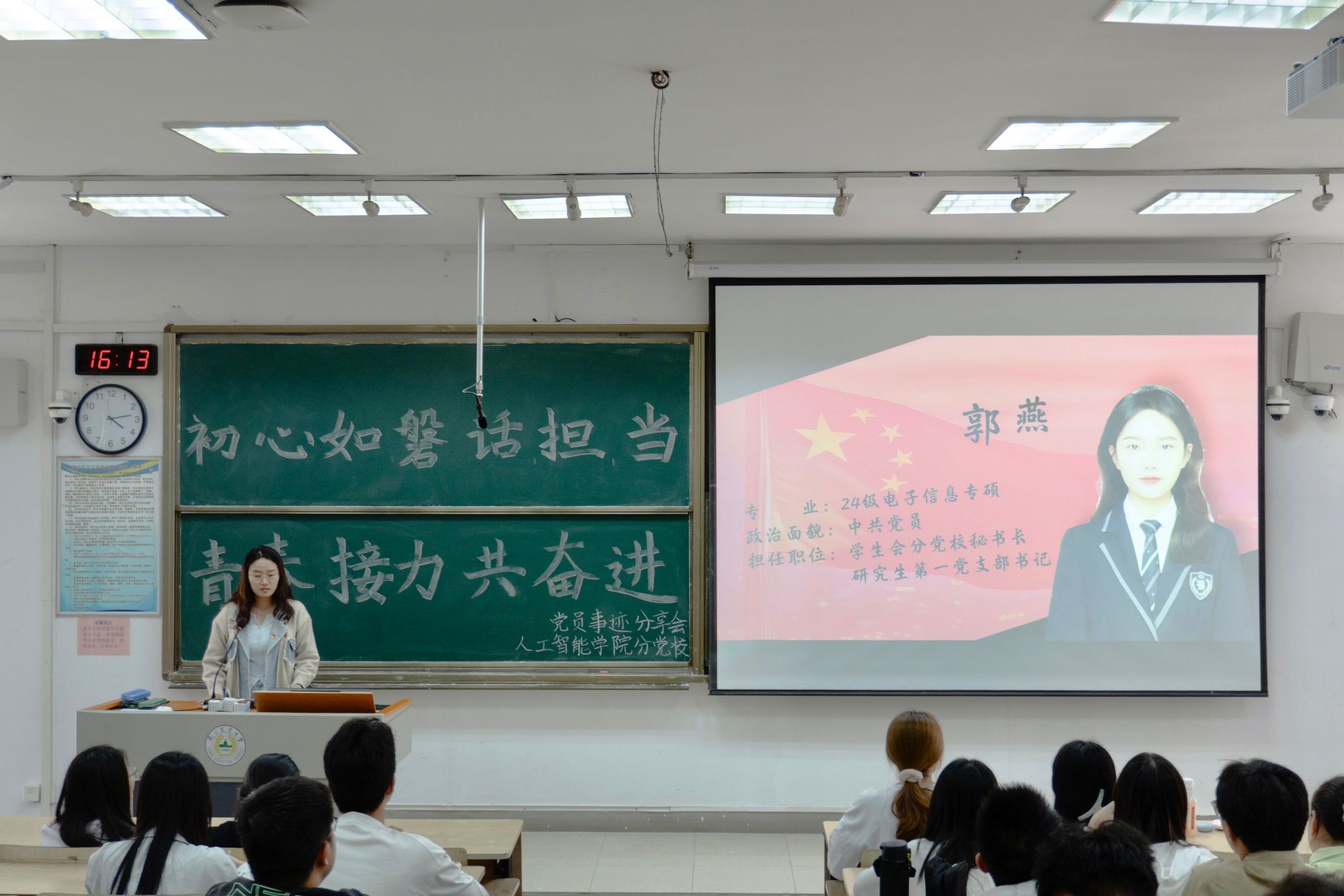4月16日下午,av影片 “初心如磐话担当,青春接力共奋进”党员分享会在浦口校区汇贤楼C202顺利举办。本次活动由学院党委主办,学院分党校联合大数据本科生党支部、计科本科生党支部、电子信息本科生第一党支部、研究生第一党支部共同举办,本科生辅导员、学生党支部书记封筱、于佳琪老师,研究生第一党支部书记郭燕,党员代表王佳辰、李声宇及浦口校区团员青年参加活动。