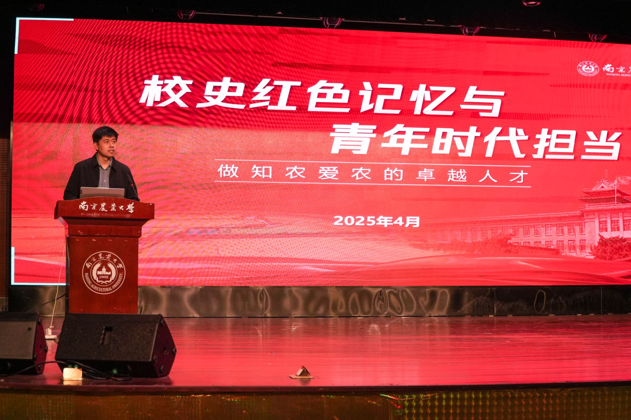 何旭以“校史红色记忆与青年时代担当”为主题,通过回溯南京农业大学发展历程中的红色印记,将校史与南农精神深度融合。他生动讲述了南农优秀前辈们投身革命、献身教育的感人事迹和新时代南农人的使命担当,带领学员们穿梭于历史长廊,触摸南农深厚的文化底蕴与精神脉络,不仅点燃了学员们的学习热情,更激发起大家接续奋斗、砥砺前行的壮志豪情。