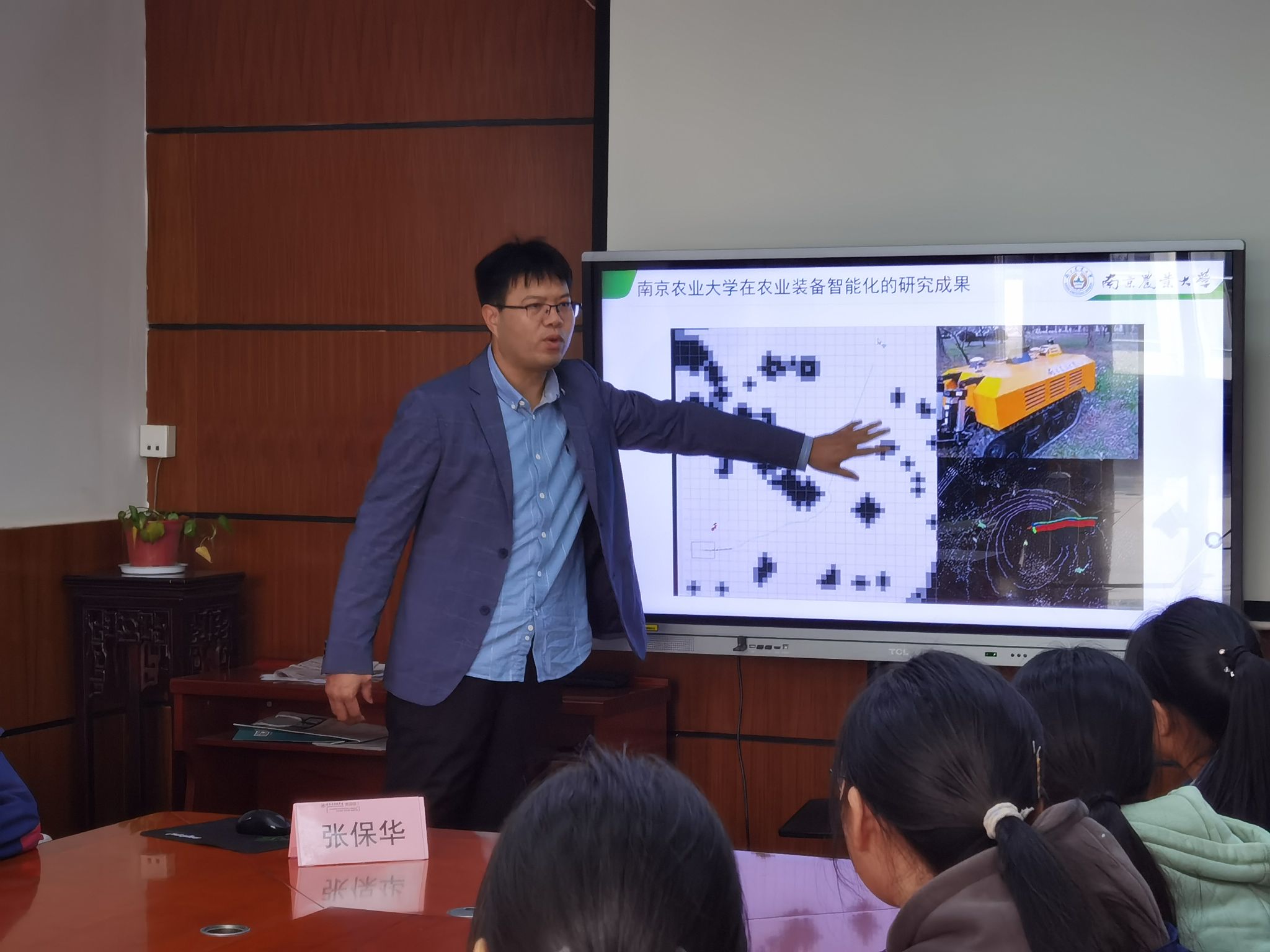 张保华为张家港高级中学的师生带来主题为《当农业遇到人工智能时代》的专题讲座。他详细介绍了人工智能技术在农业生产各个环节的应用实例,深入浅出的阐述了农业与人工智能融合所带来的巨大变革与无限潜力,点燃了学生们对新兴科技与传统农业交叉领域探索的热情。此外,他着重向同学们展示了南京农业大学在相关方向的研究成果,并引领同学们预见人工智能在乡村振兴战略实施推进过程中的广阔应用前景,带领学生们领略人工智能的魅力,为他们打开了一扇洞察农业科技创新前沿的窗户,激发学生对未来智慧农业发展方向的深度思考。讲座后,张保华与同学们就“人工智能赋能农业”等方面的问题进行了互动与交流。