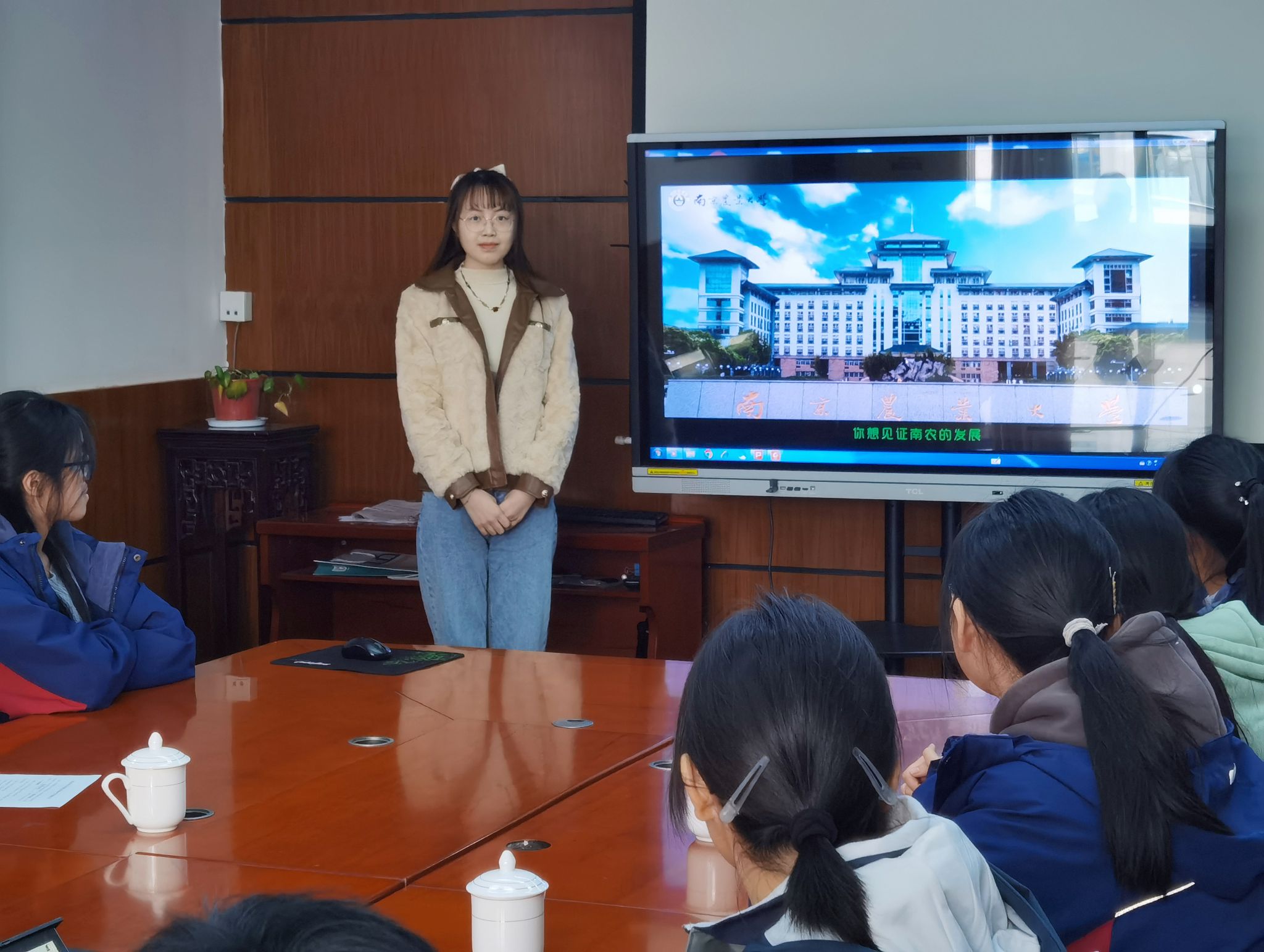 于佳琪针对南京农业大学悠久的办学历史、强劲的学科专长、多元的人才培育策略、丰富的校园文化生活以及良好的升学就业前景等方面向中学的师生们展开了深入且细致的阐释。以多视角、全维度的方式,淋漓尽致地呈现出本校独具一格的学科特质与浓郁醇厚的校园文化氛围,有效增进了同学们对于南京农业大学的熟知程度。期间,参会师生一同观看了《南京农业大学招生宣传片》,进一步直观地感受了学校的魅力与活力。