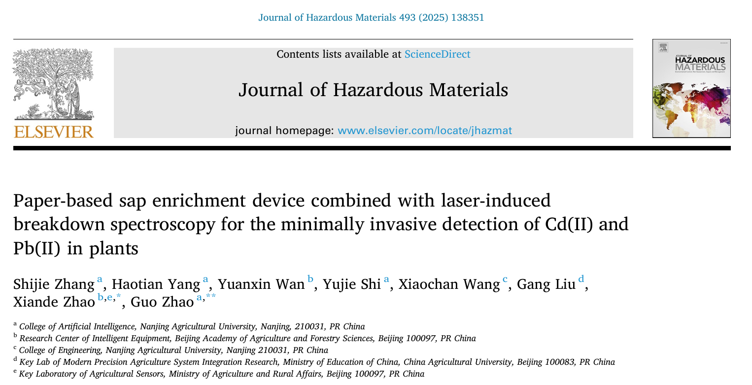 赵国副教授团队在植物本体重金属微损检测技术方面发表创新成果
