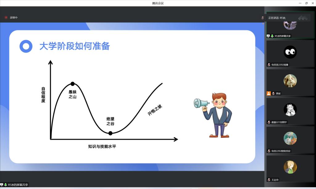 举办2022级新生入学系列讲座之——大学生涯规划专题讲座。本次讲座由毕业于北京大学、现优课达集团CEO、优课达教育联合创始人、前阿里巴巴技术专家叶冰主讲,学院学工办副主任湛斌主持,新生辅导员李洪、全体2022级新生线上参与此次讲座。