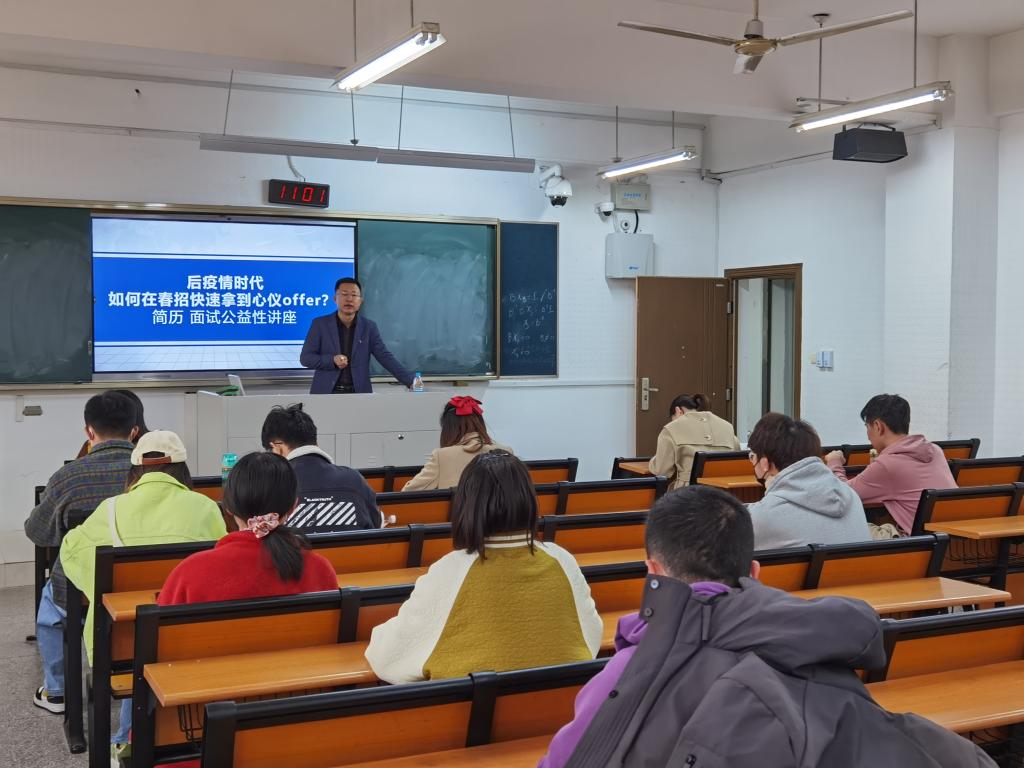 3月2日,av影片 “春招”简历制作、面试能力提升指导讲座,在卫岗校区教四楼B203(上午)、浦口校区汇贤楼B204(下午)双边顺利举办。本次讲座特邀艾瑞集团汇智系统集成有限公司项目负责人陈韩老师主讲,旨在分享简历完善、面试能力提升的经验,解决同学们在“春招”中的各种问题。