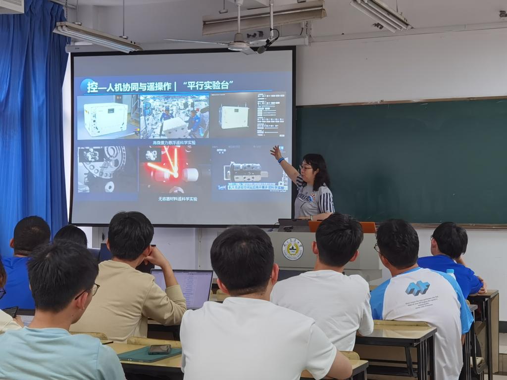 随后,于歌从神舟、天宫等航天现象级科技成果出发,分别从空间应用工程与技术中心研究领域、科研环境、所获成就、研究生培养概况以及就业情况等做了详细的介绍,使学生对神秘的航天事业有了具象的了解。